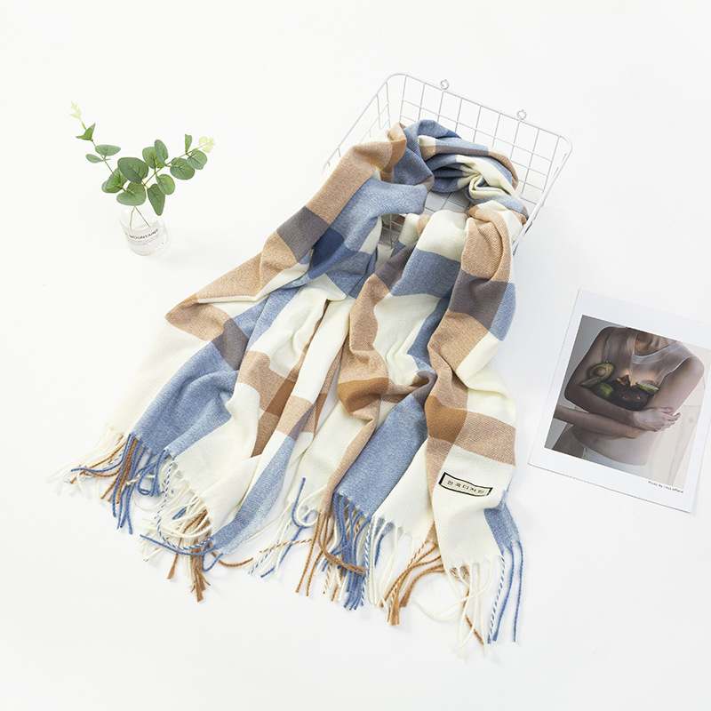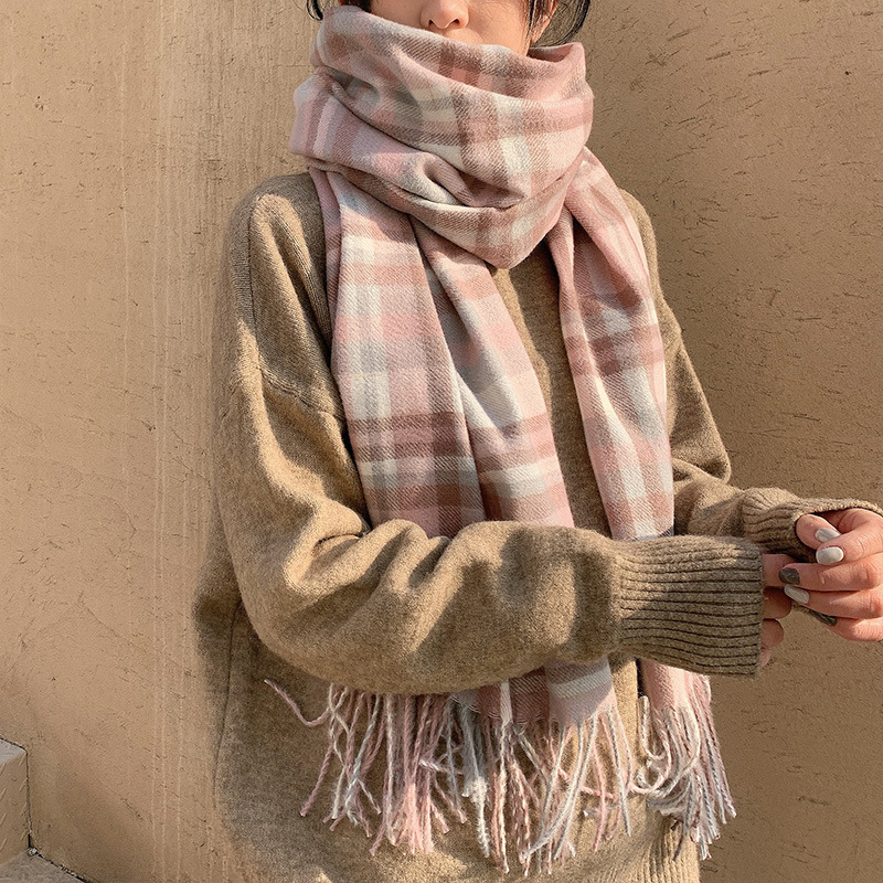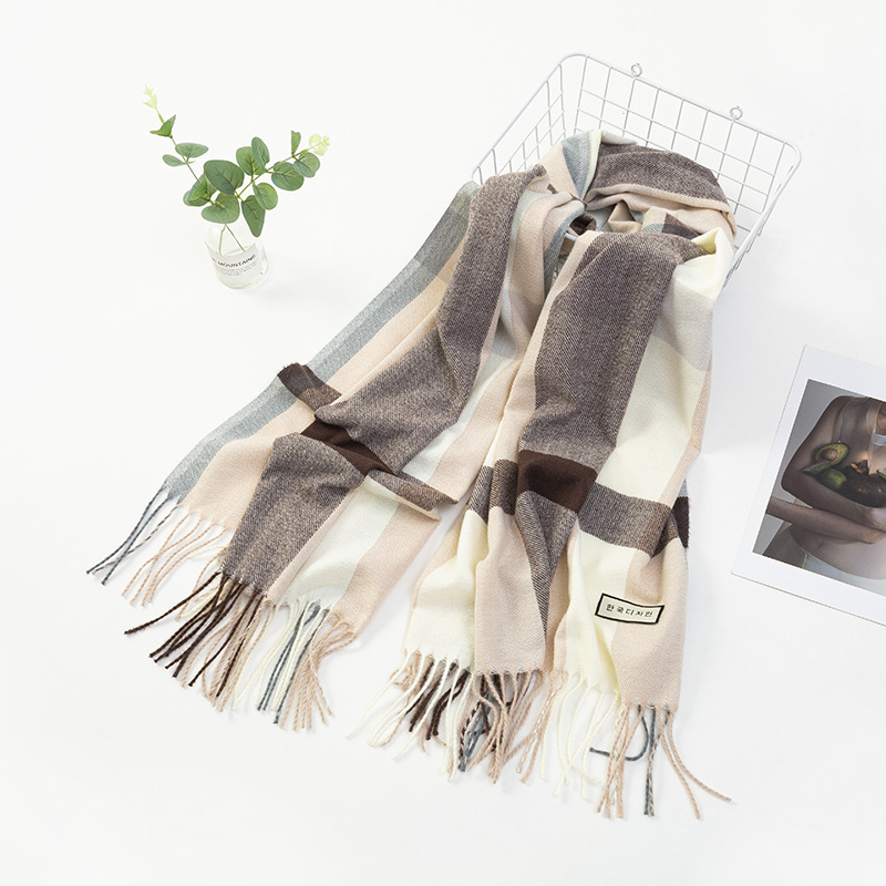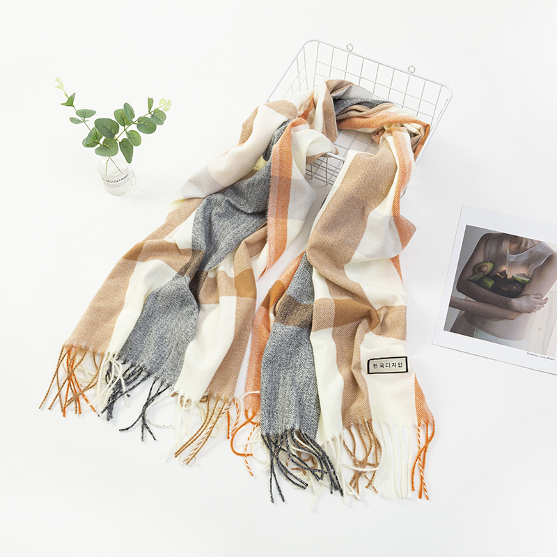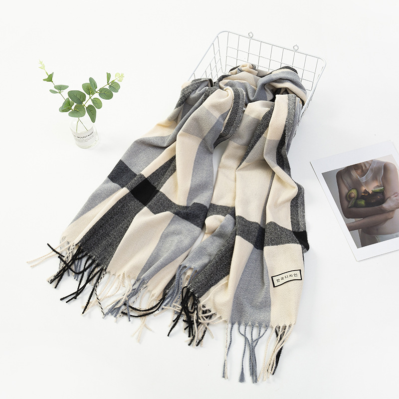 모조 캐시미어 스카프 여성 겨울 한국 격자 무늬 목도리 이중 목적 간단한 가을, 겨울 다목적 두꺼운 따뜻한 스카프 도매