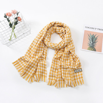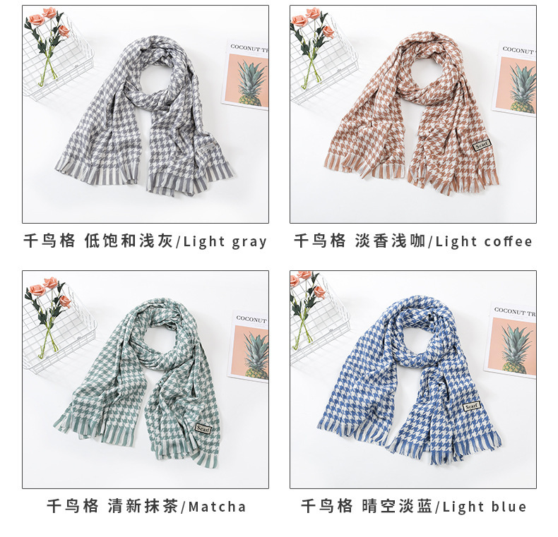 千鸟格围巾女冬季2023新款格子围巾 仿羊绒保暖流苏披肩加厚围脖