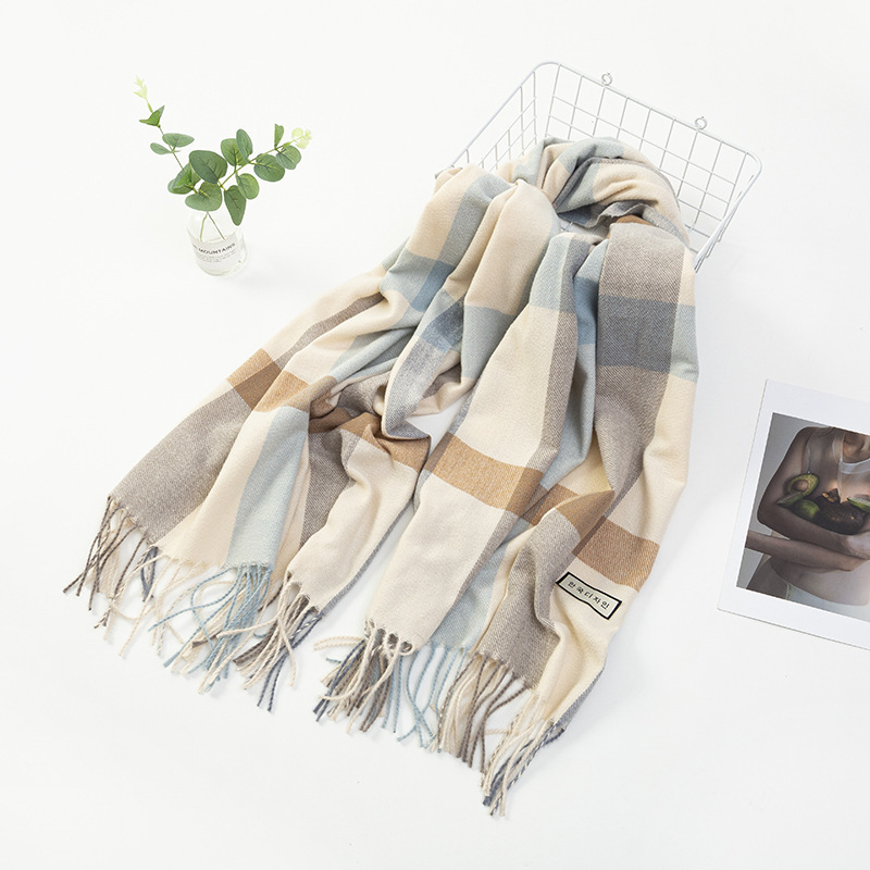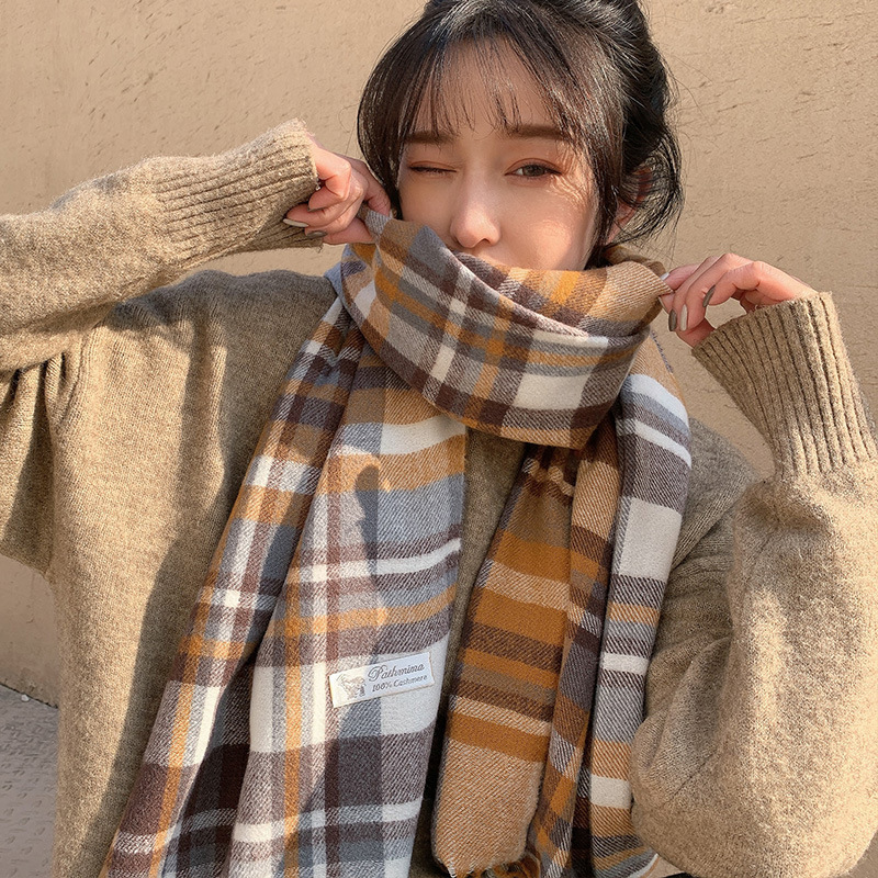 모조 캐시미어 스카프 여성 겨울 한국 격자 무늬 목도리 이중 목적 간단한 가을, 겨울 다목적 두꺼운 따뜻한 스카프 도매스토어 가기