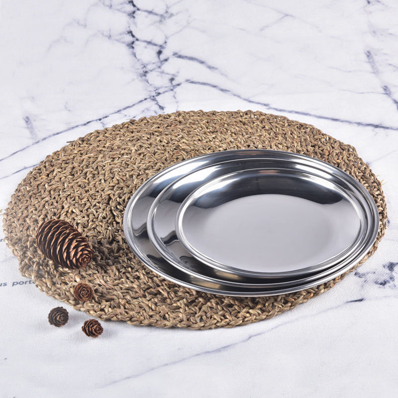 304 스테인레스 스틸 한국식 바베큐 접시 두꺼운 디스크 황금 디저트 접시 서양 음식 접시 뷔페 접시 바베큐 접시