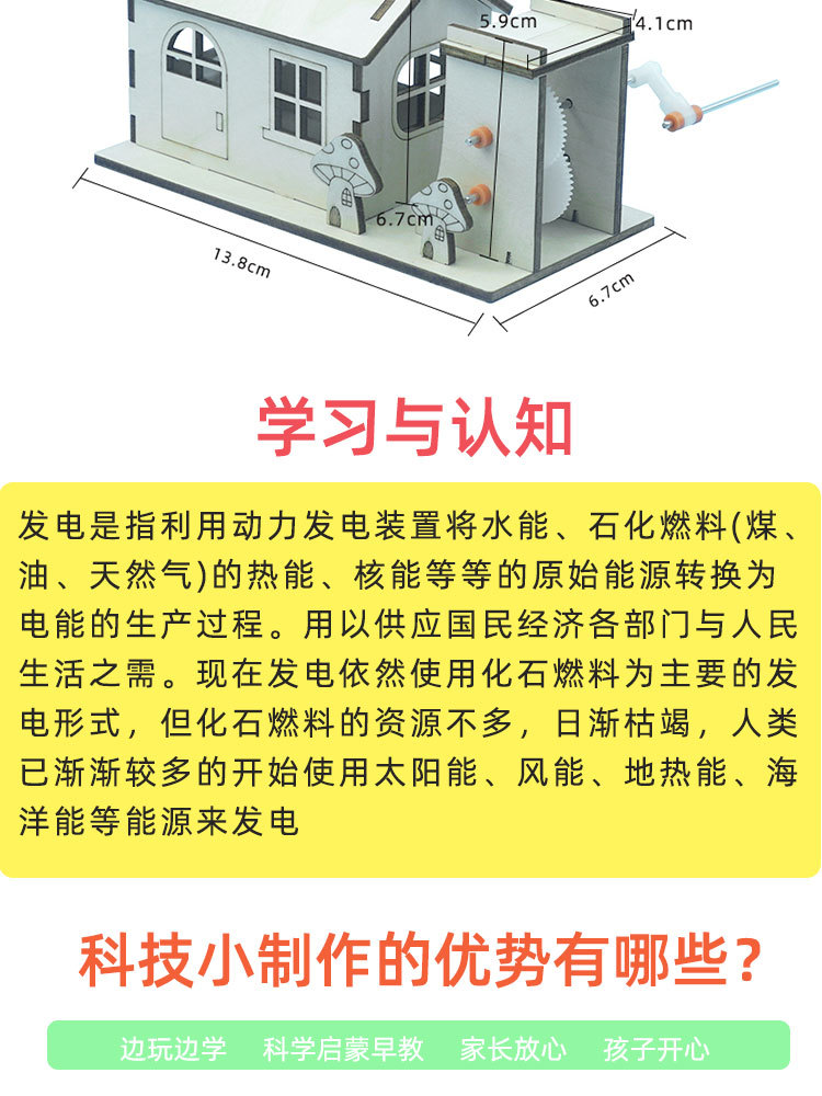 어린이 나무 손으로 크랭크 발전 오두막 교육 보조 기술 소규모 생산 작은 발명품 수제 diy 조립 모델 재료스토어 가기