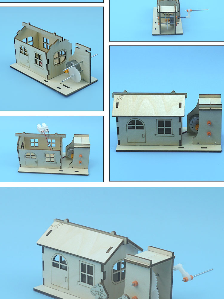 어린이 나무 손으로 크랭크 발전 오두막 교육 보조 기술 소규모 생산 작은 발명품 수제 diy 조립 모델 재료