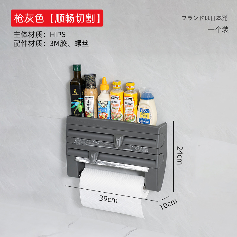 커터가있는 주방 플라스틱 랩 보관 랙 알루미늄 호일 바베큐 종이 보관 랙 티슈 랙 타월 보관 랙