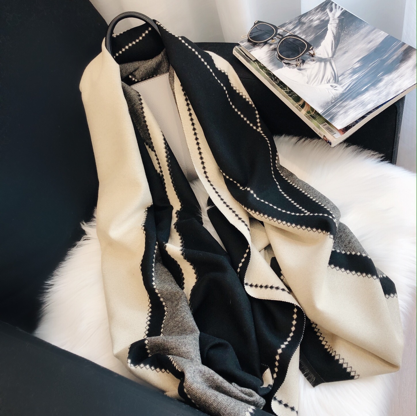 스카프 제조 업체 가을과 겨울 양면 캐시미어 따뜻한 목도리 여성용 V 자형 자카드 한국 바느질 스카프 도매스토어 가기