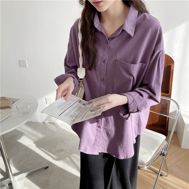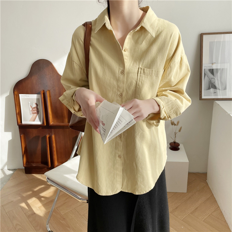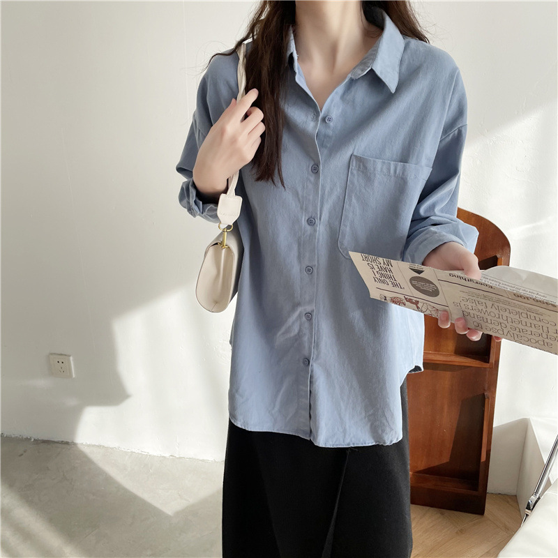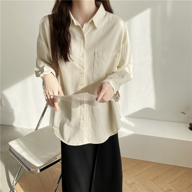 2022 이른 봄 새로운 스타일 신선한 간단한 한국 스타일 단색 느슨한 bf 긴 소매 셔츠 여성베이스 셔츠 트렌디스토어 가기