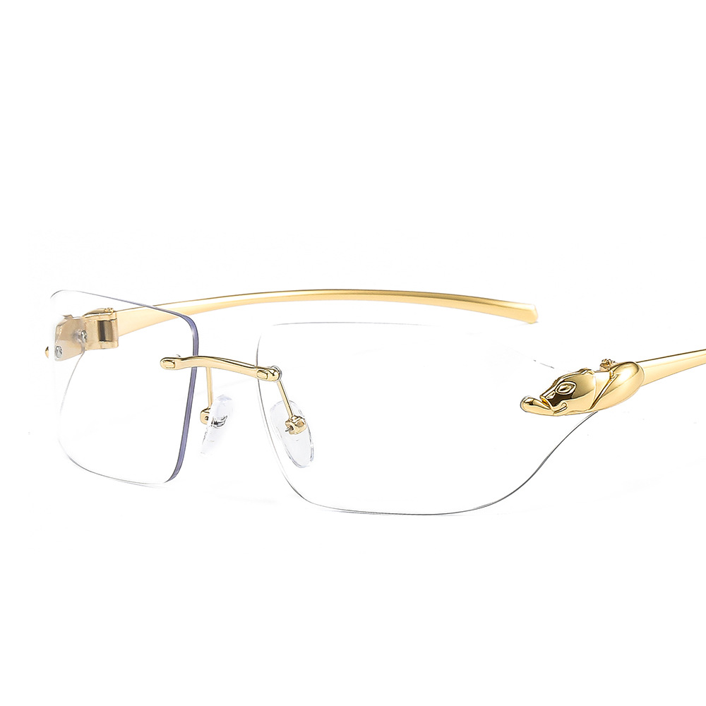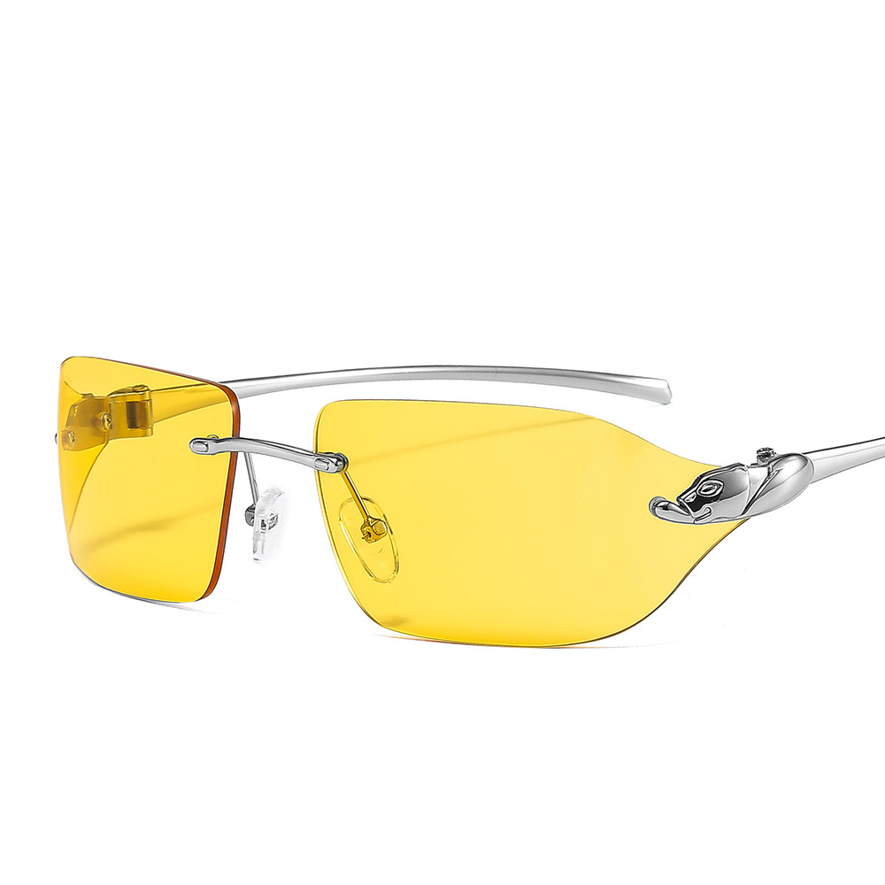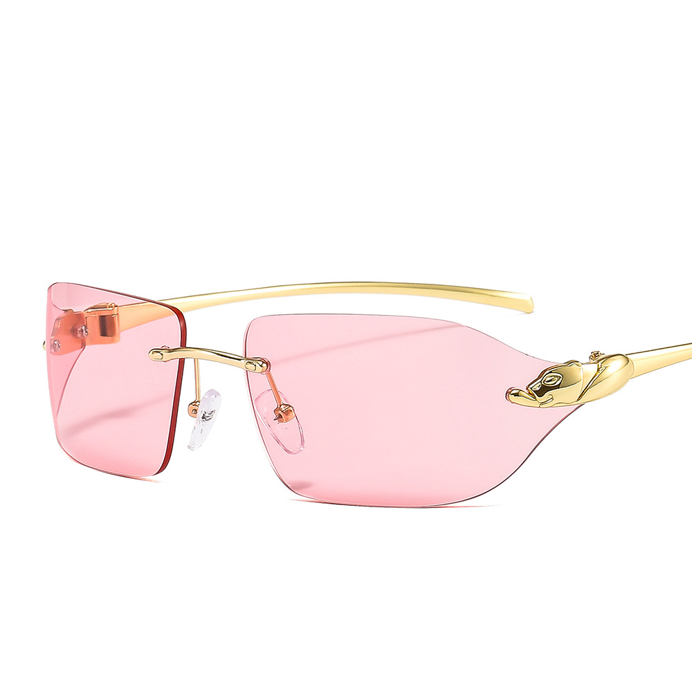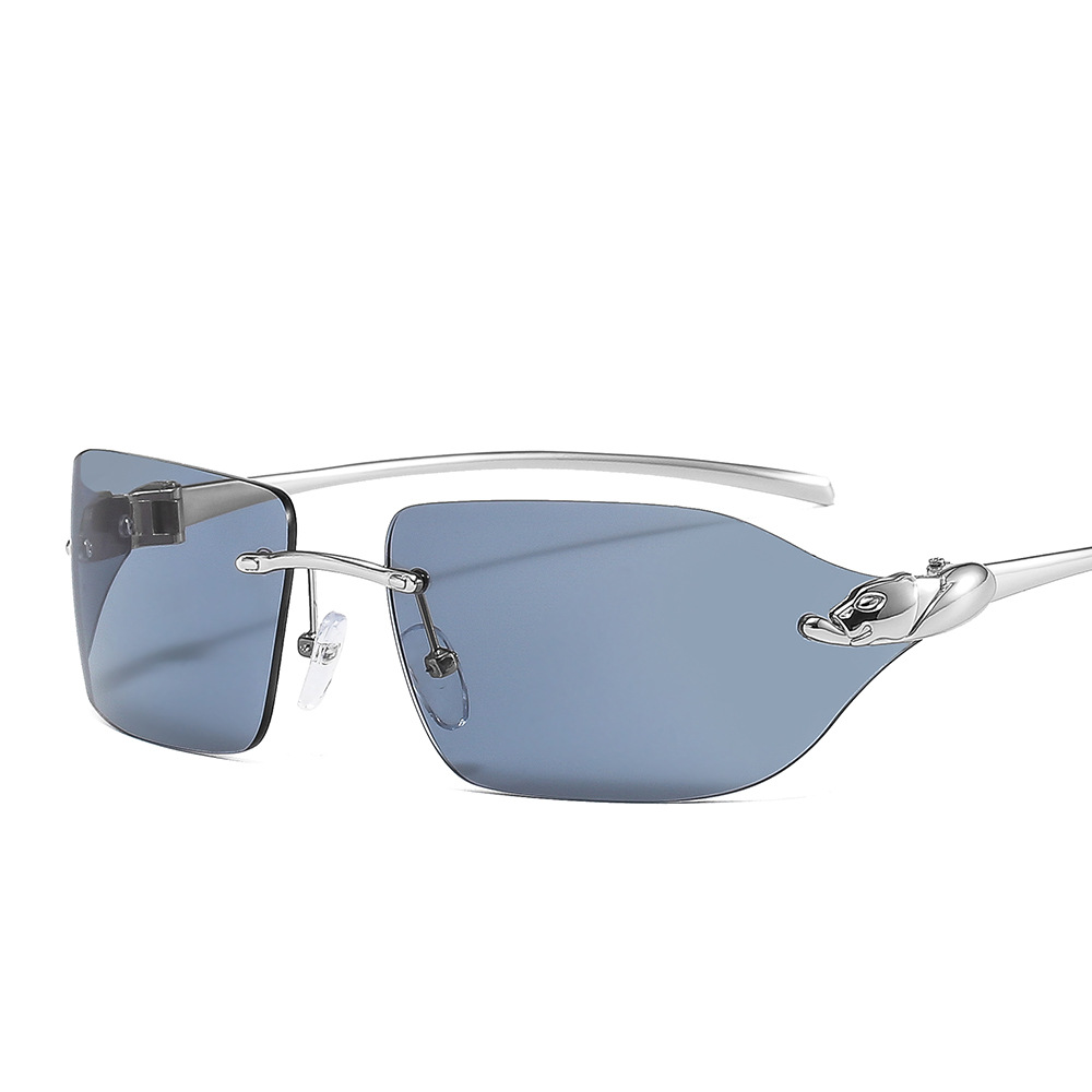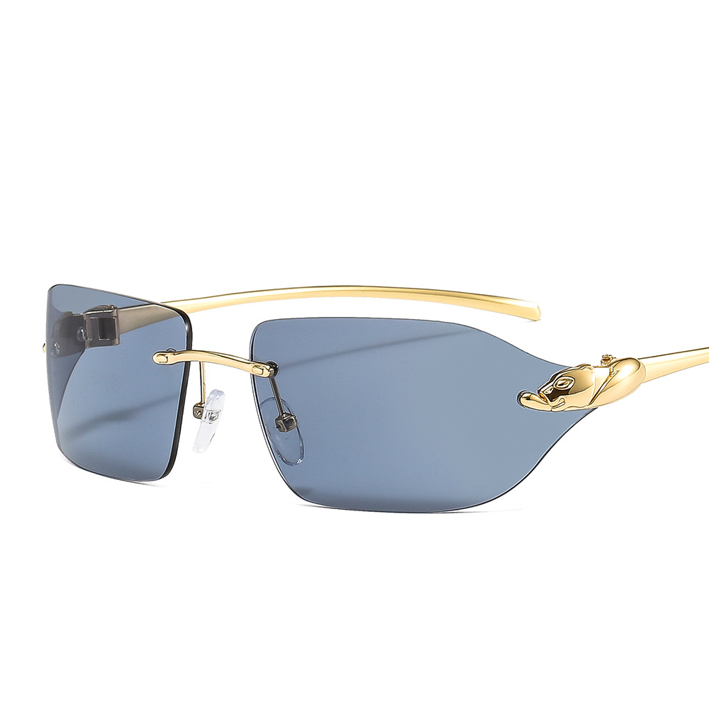 금속 표범 머리 장식 크로스 보더 핫 프레임리스 측면 곡선 선글라스 컬러 패션 복고풍 남성과 여성의 선글라스스토어 가기