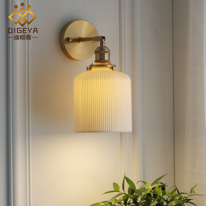 일본 스타일 황동 세라믹 벽 램프 새로운 중국 스타일 북유럽 간단한 침실 침대 옆 램프 빈티지 통로 입구 거울 전면 벽 램프스토어 가기