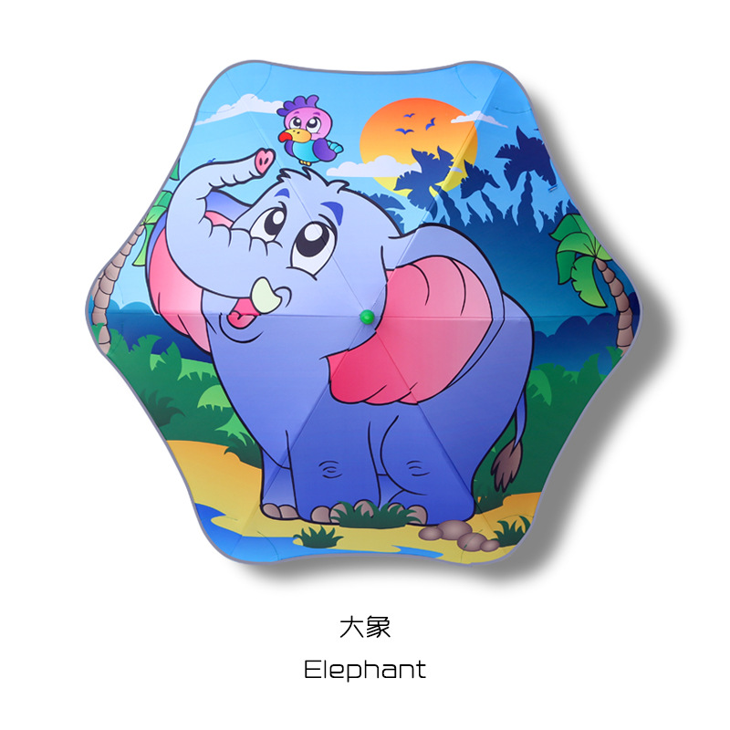• 6 뼈 스트레이트 막대 어린이 우산 블랙 접착제 반사 스트립 코끼리