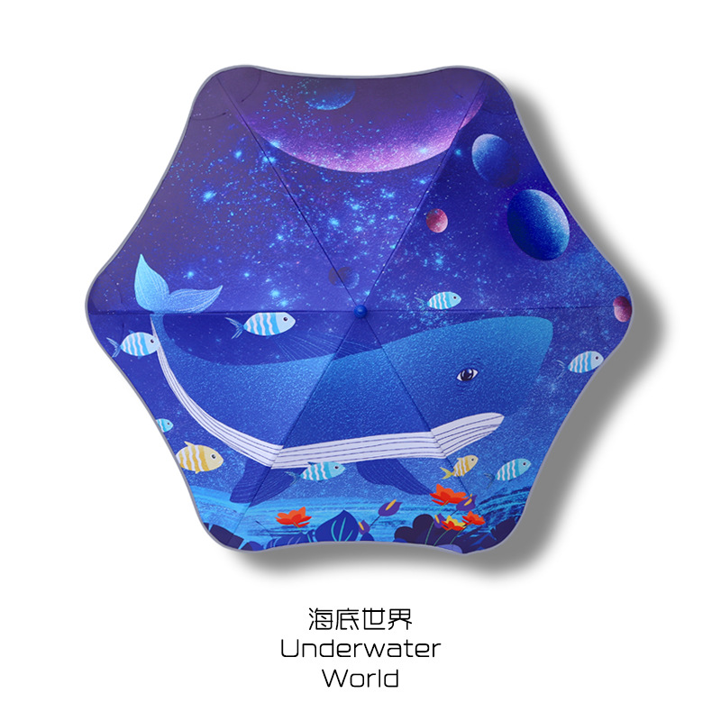 • 6 뼈 스트레이트 막대 어린이 우산 블랙 접착제 반사 스트립 수중 세계