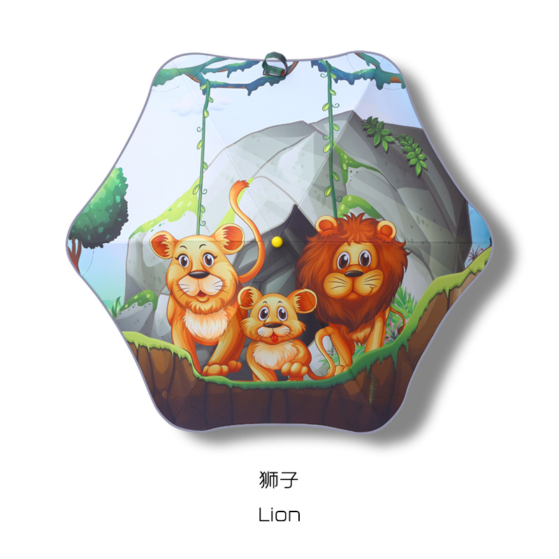 • 6 뼈 스트레이트 막대 어린이 우산 블랙 접착제 반사 스트립 사자