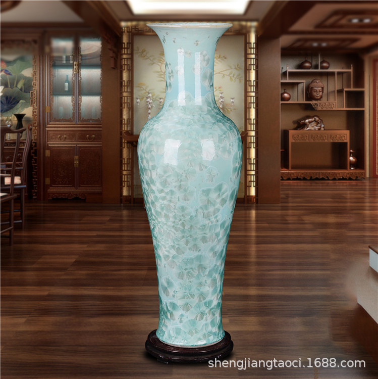 Jingdezhen 도자기 크리스탈 유약 바닥 대형 꽃병 새 집 거실 장식 홈 호텔 장식 선물