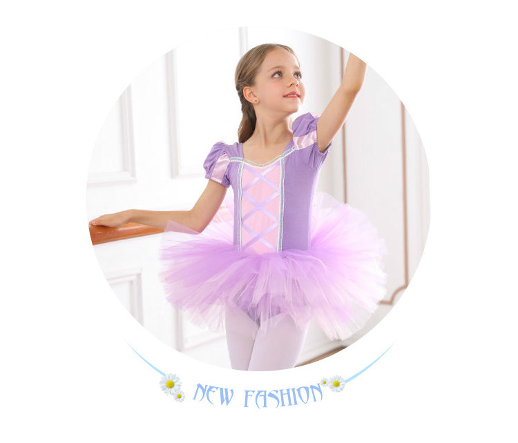 어린이 댄스 옷 여자 봄과 여름 훈련 옷 반팔 여자 중국 춤 어린이 발레 원피스 공주 보라색 용기 원피스