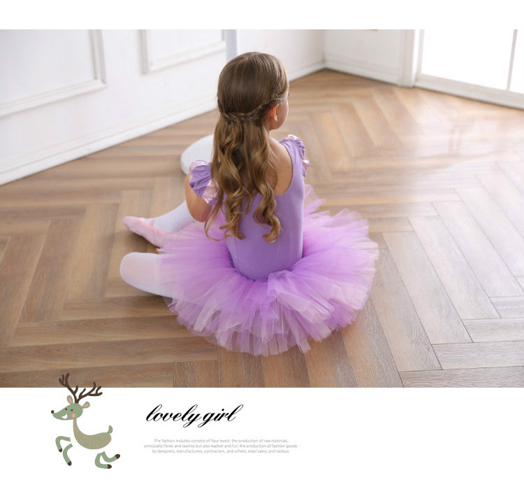 어린이 댄스 옷 여자 봄과 여름 훈련 옷 반팔 여자 중국 춤 어린이 발레 원피스 공주 보라색 용기 원피스스토어 가기