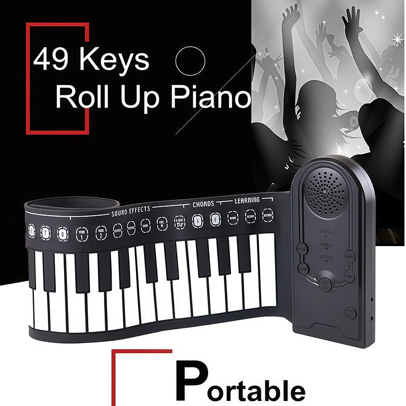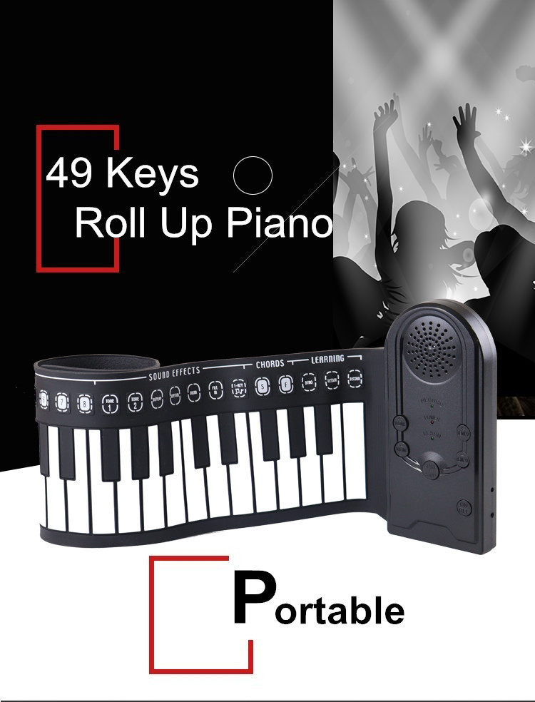 1、49键可卷琴键为标准琴键,琴键可卷起,体积小,易携带。