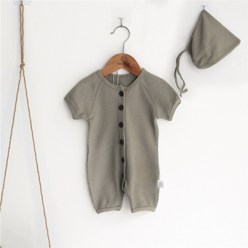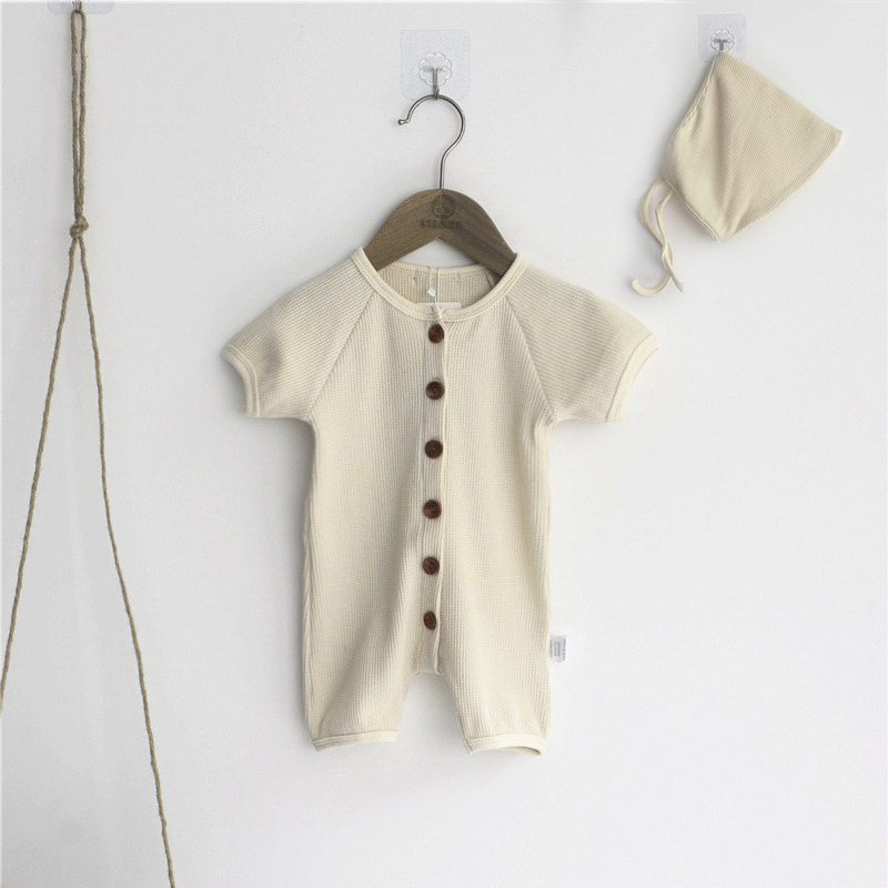 • 밀크 화이트 단색 점프수트 + 모자 세트