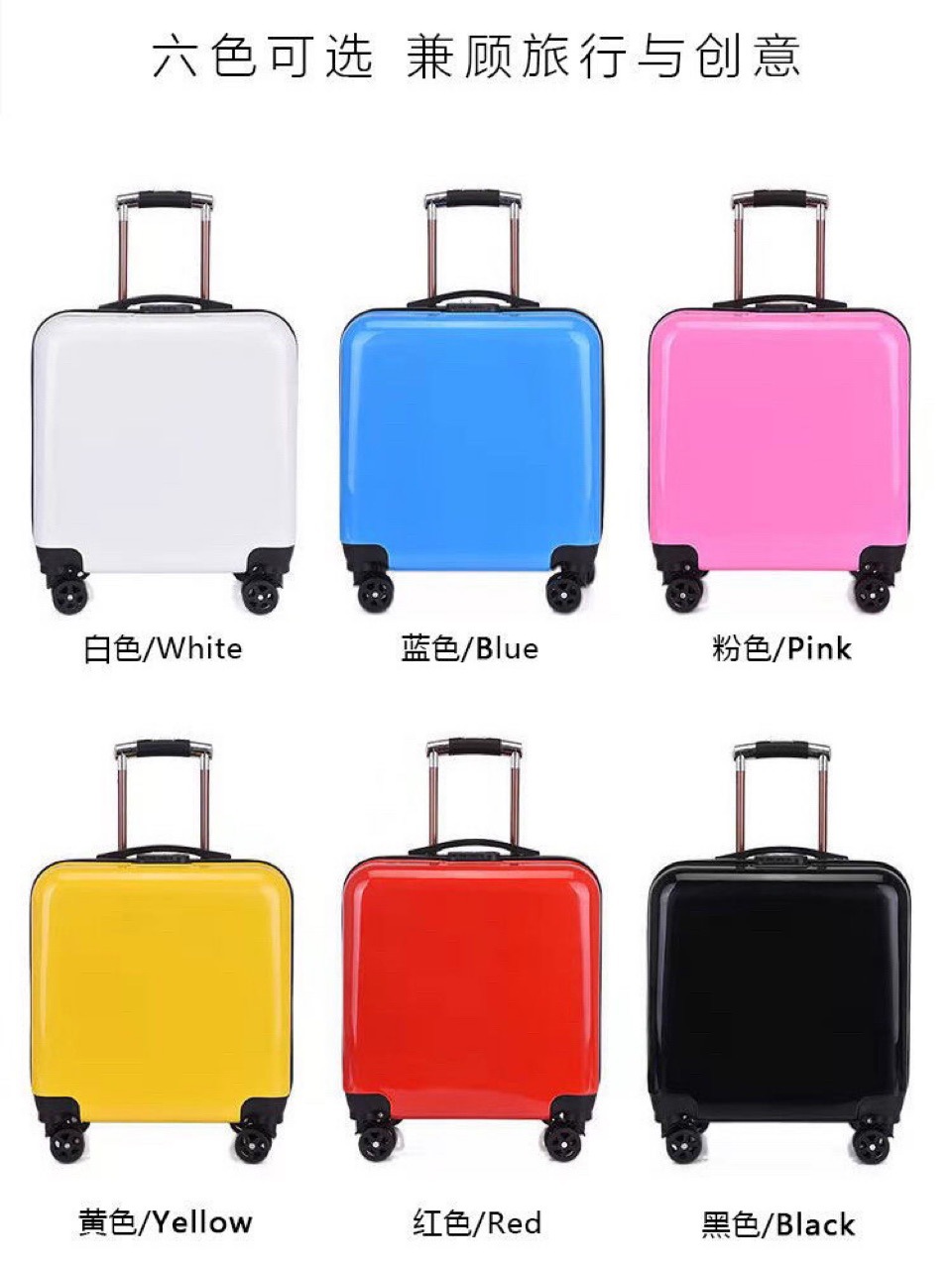 拉杆箱最终重要的就是底轮 宽的承受力更强,请大家细心耐心的做一下比较,我们用的是配置是,质感更为高端大气的白色加宽底轮,严格要求精做产品 满意率%