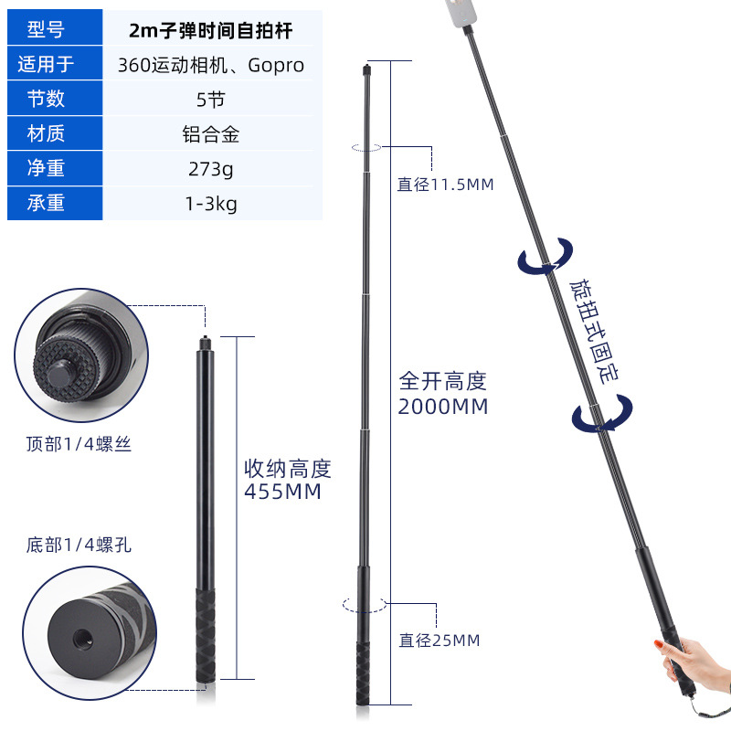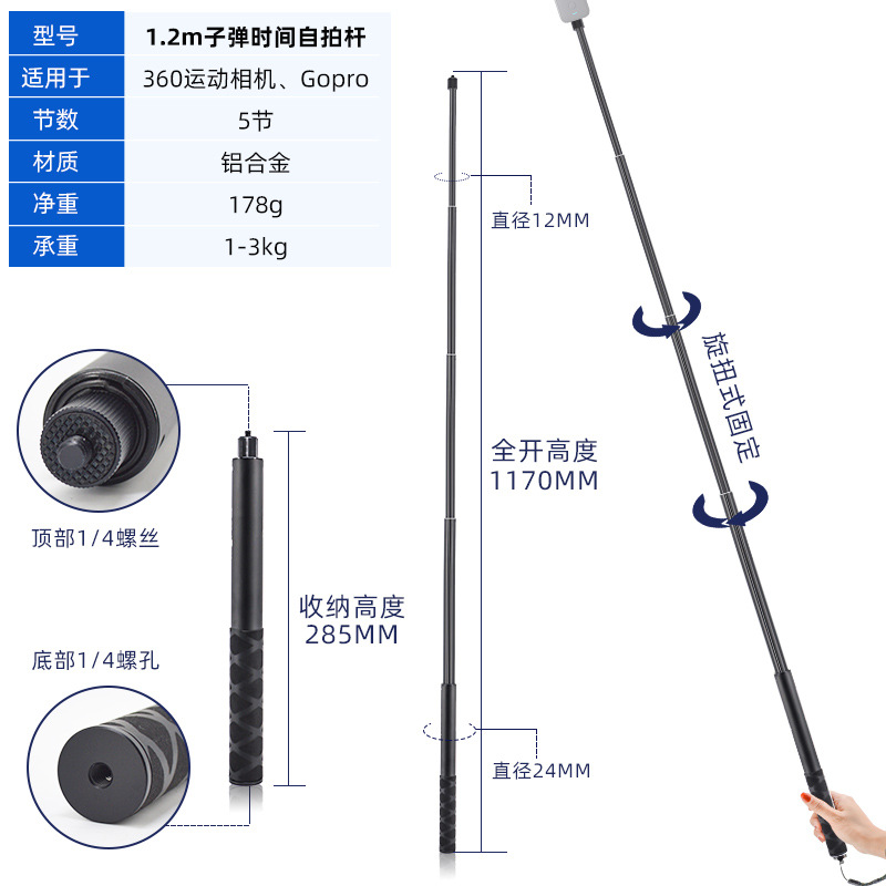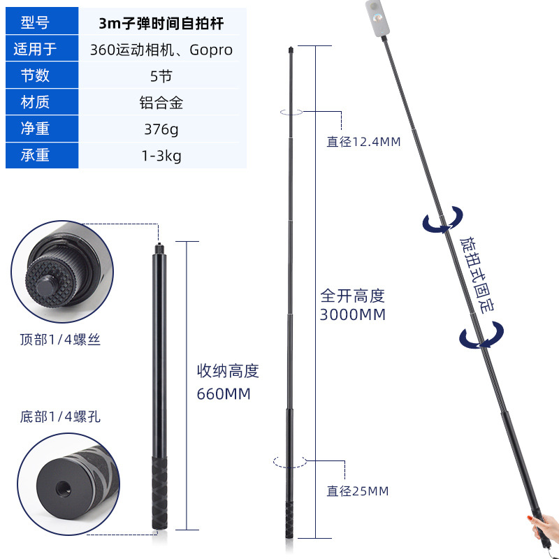 Insta 360 ONE R/ X2/EVO 총알 시간 셀카 스틱 핸들 회전 촬영 세트 셀카 스틱스토어 가기