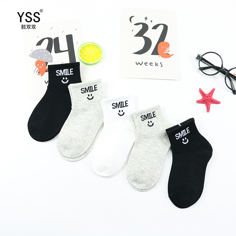 어린이 양말 Yi 쌍 봄과 여름 새로운 한국어 편지 짧은 양말 빗질 된 면 소년 스포츠 양말 흑백 회색 면 양말스토어 가기