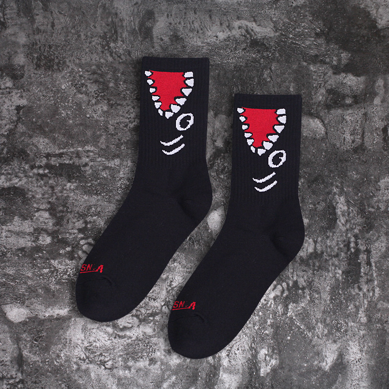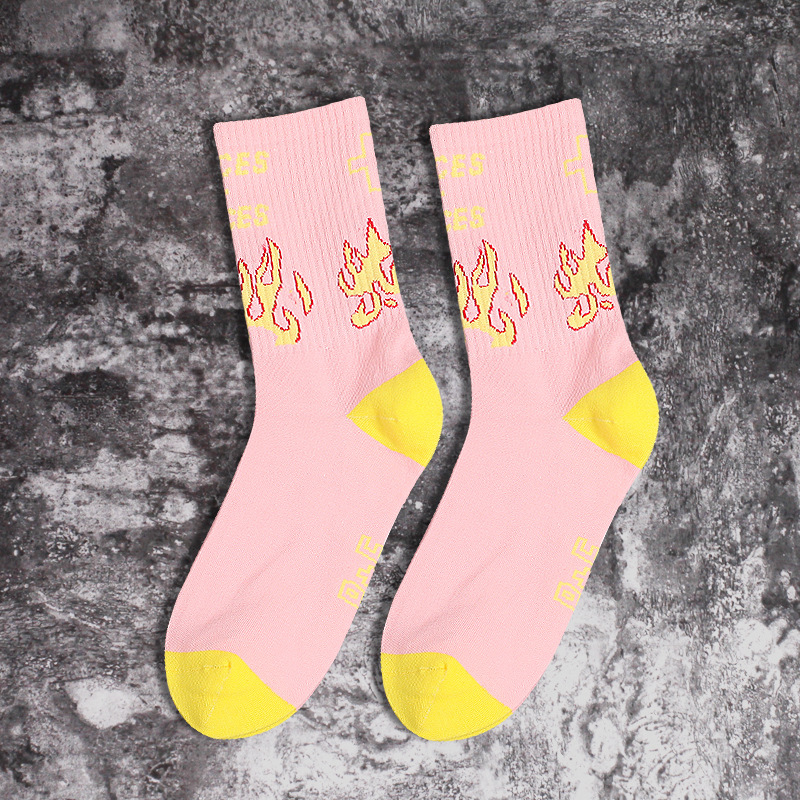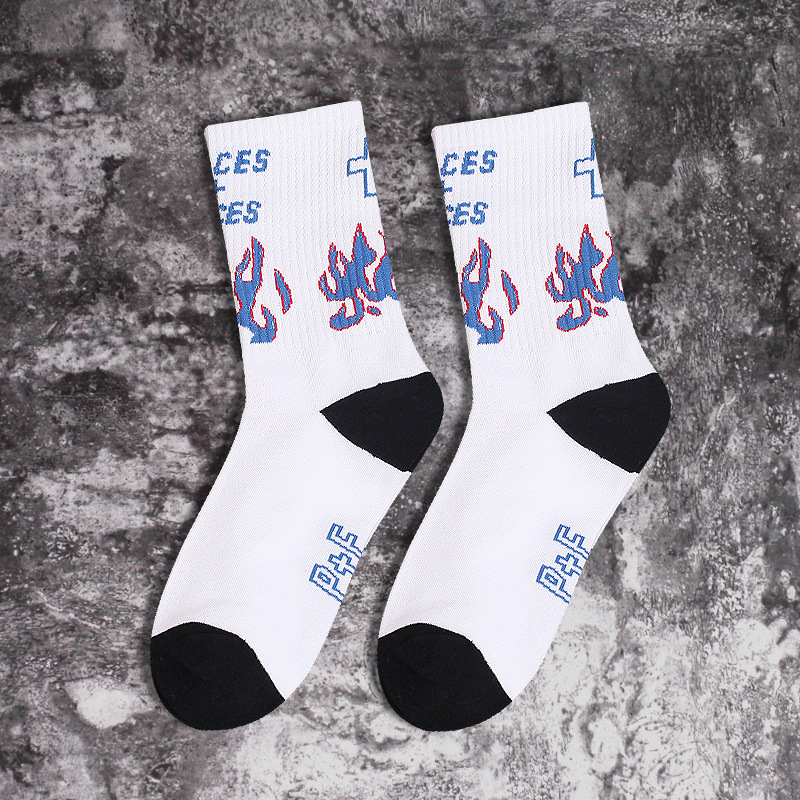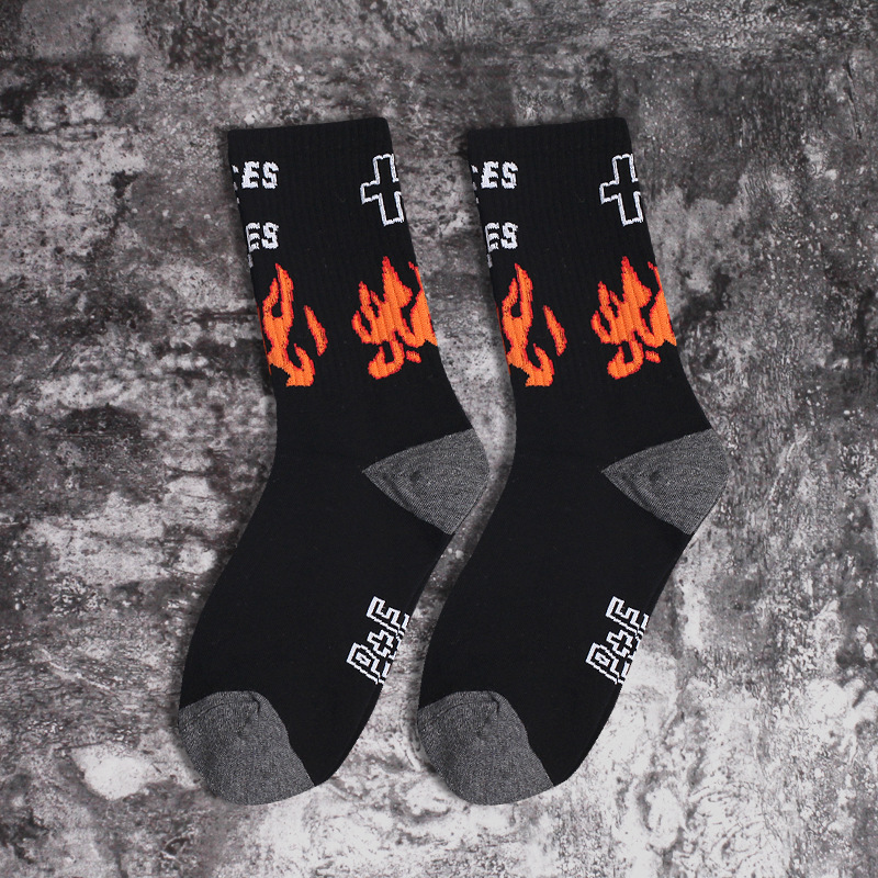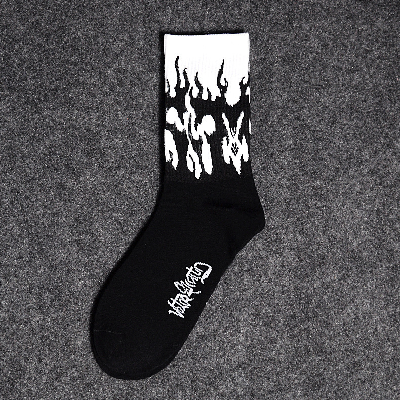 • 3001-174 긴 튜브 검은 양말 불꽃