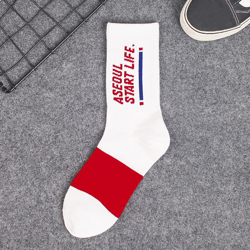 양말 여성 인터넷 연예인 레인보우 양말 스트라이프 면 양말 한국 스포츠 한국식 대학 스타일 여성의 중간 길이 유행 양말스토어 가기