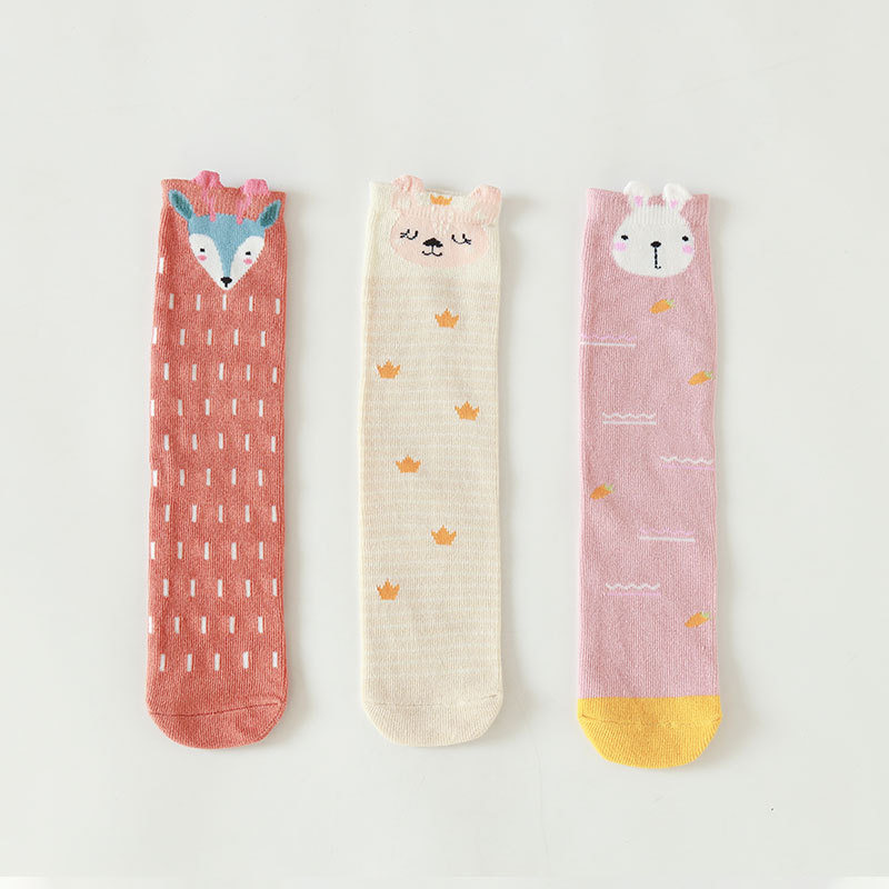Xiao Qi Na Mi 2023 봄과 여름 새로운 만화 작은 동물 어린이 양말 소년과 소녀를위한 한국식 무릎 위 양말