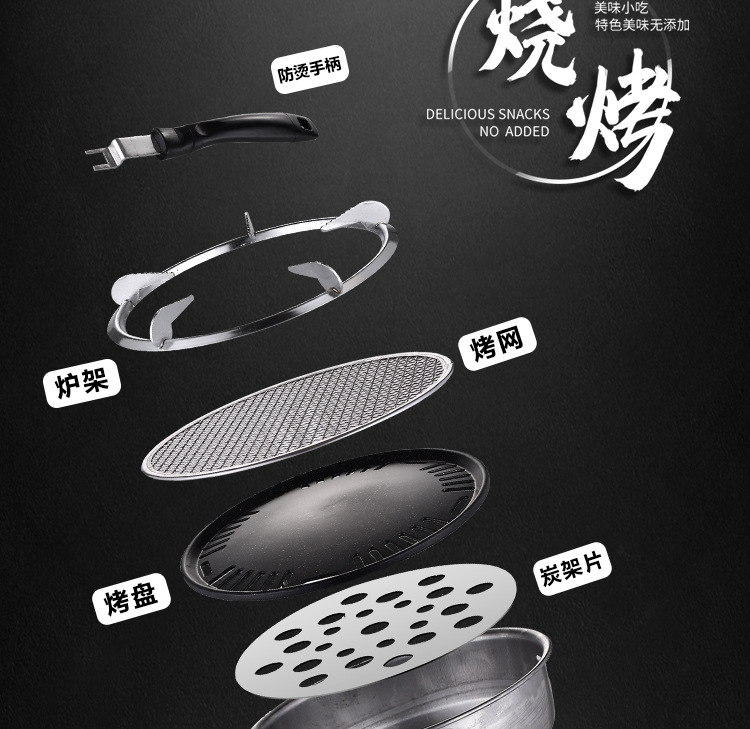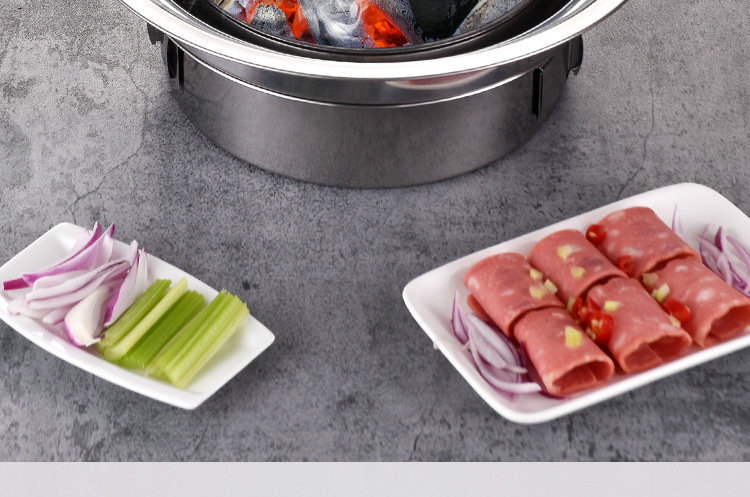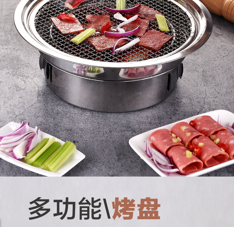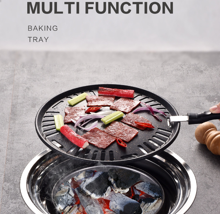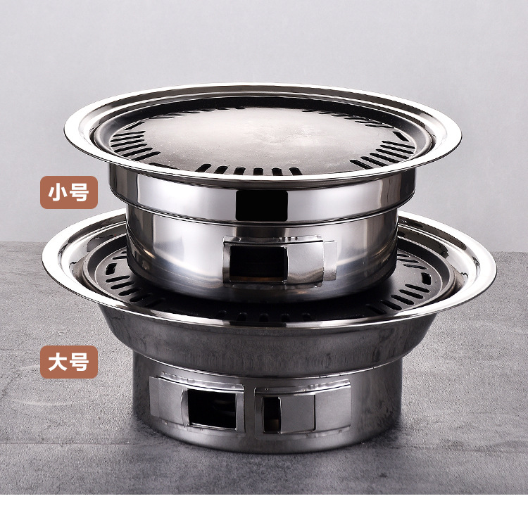 스테인레스 스틸 한국식 바베큐 오븐 라운드 가정용 상업용 캠핑 저녁 식사 탄소 오븐 휴대용 숯 바베큐 오븐