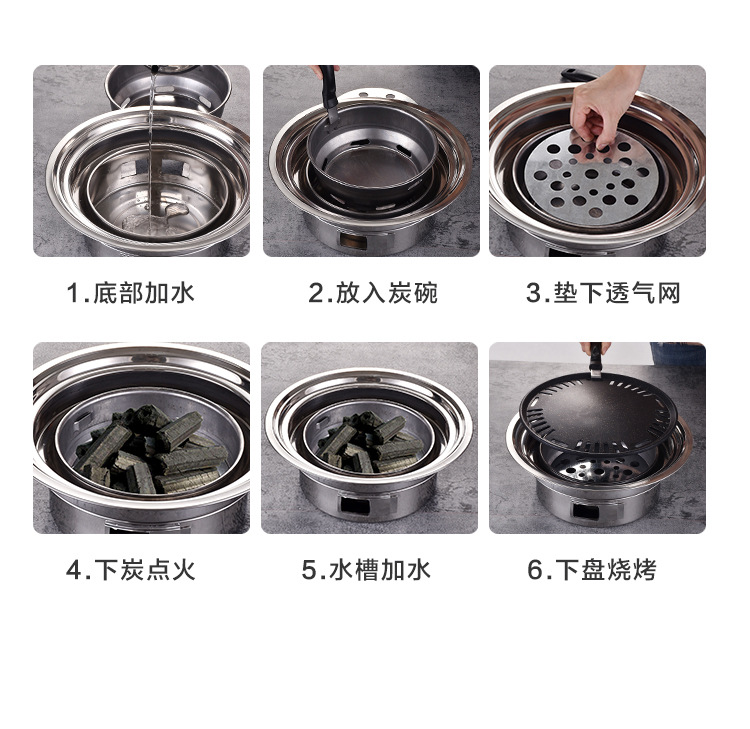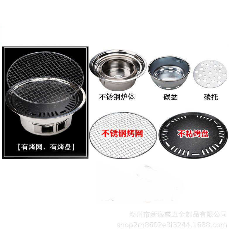 스테인레스 스틸 한국식 바베큐 오븐 라운드 가정용 상업용 캠핑 저녁 식사 탄소 오븐 휴대용 숯 바베큐 오븐스토어 가기