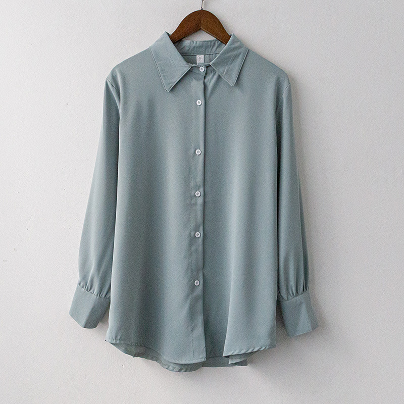 [비청] 2021 이른 봄 새로운 한국 옷깃 단색 긴 소매 쉬폰 셔츠 우아한 웨스턴 스타일 셔츠 4710