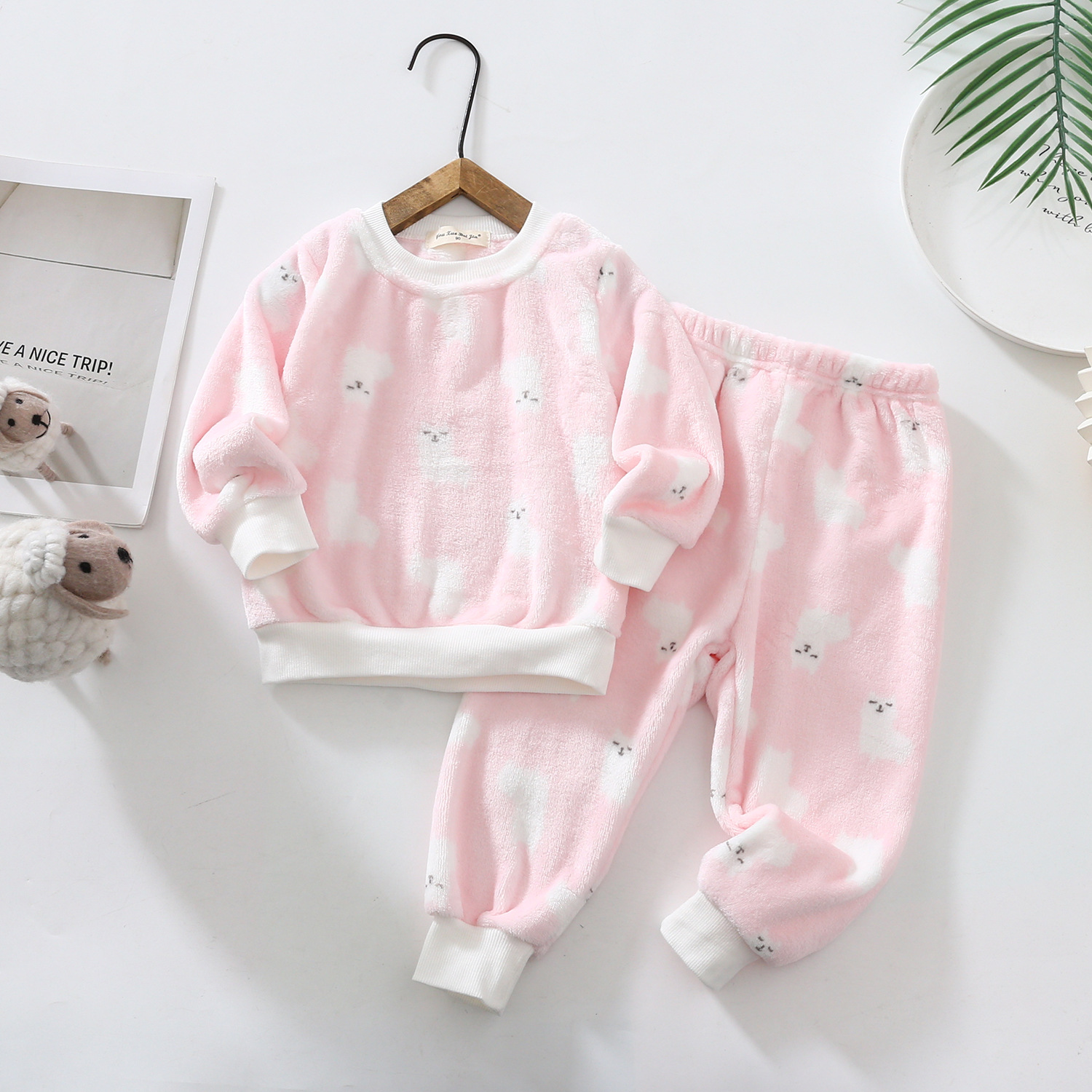 2021 어린이 홈 투피스 플란넬 풀오버 풀 프린트 소년과 소녀 잠옷 컬러 매칭 소녀 세트스토어 가기