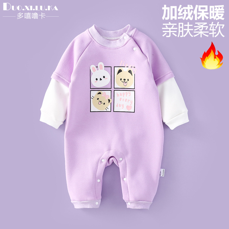신생아 아기 죄수복 가을과 겨울 기모 두꺼운 따뜻한 아기 소년과 소녀는 옷을 세트 가지고 나가기 3 개월 6스토어 가기