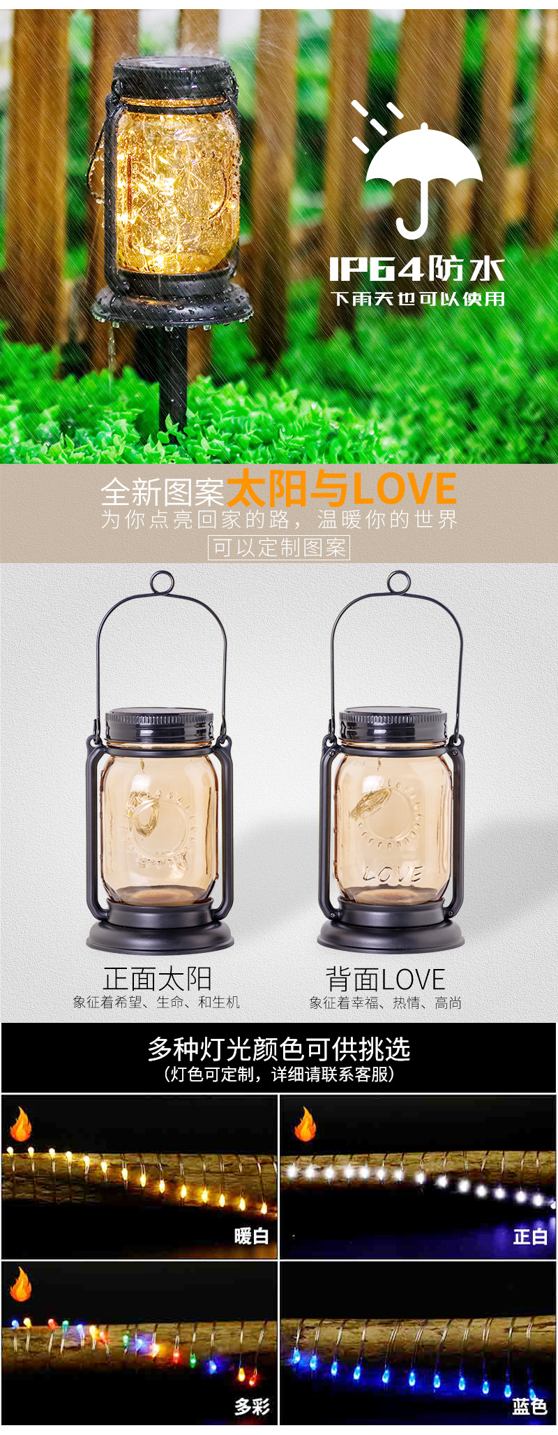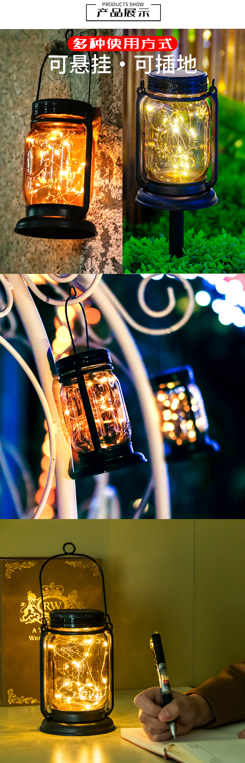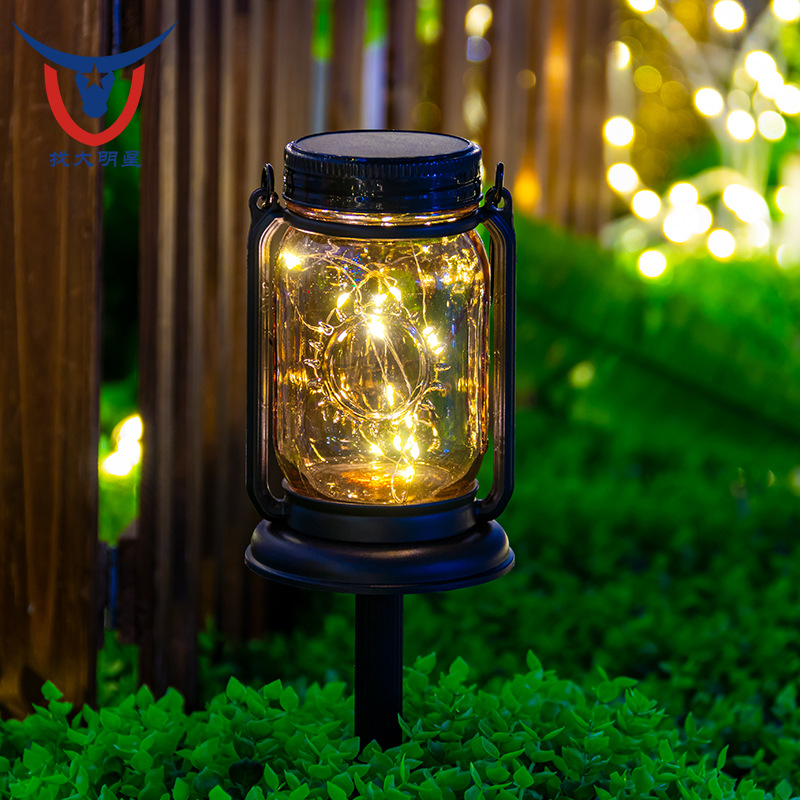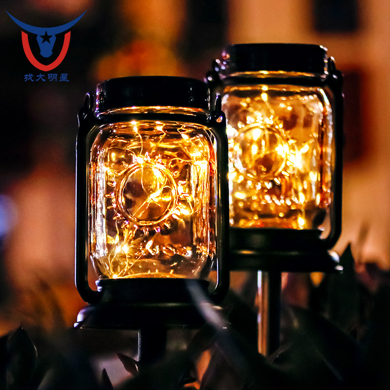 새로운 복고풍 스타일 그라운드 플러그 태양 메이슨 항아리 램프 잔디 정원 장식 램프 LED 태양 잔디 램프 야외