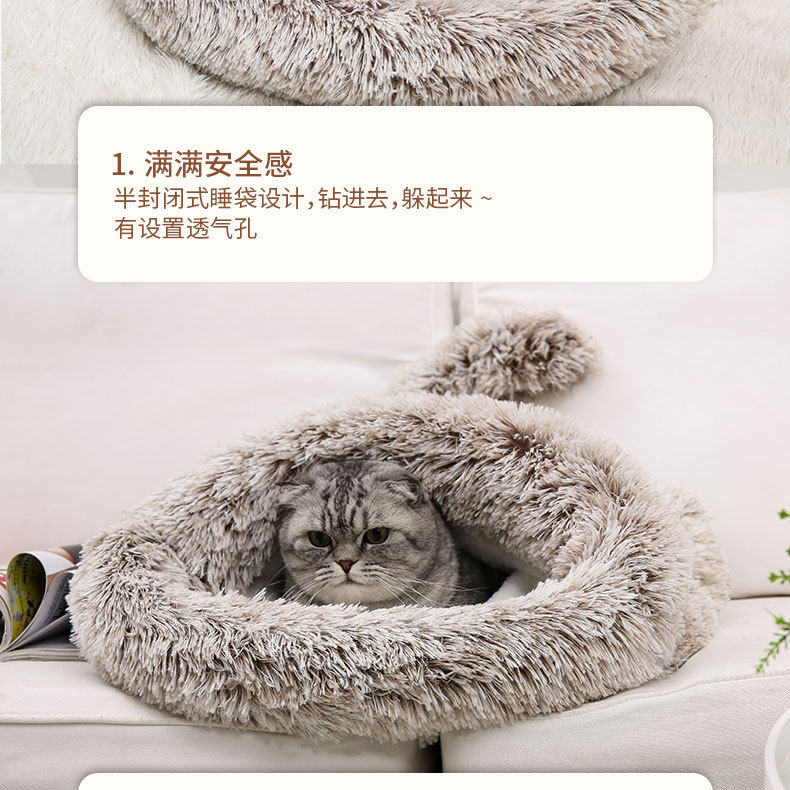 고양이 둥지 테디 중형 및 소형 개 고양이 하프 팩 애완 동물 침낭 매트 이중 사용 가을과 겨울 따뜻한 봉제 애완 동물 매트스토어 가기