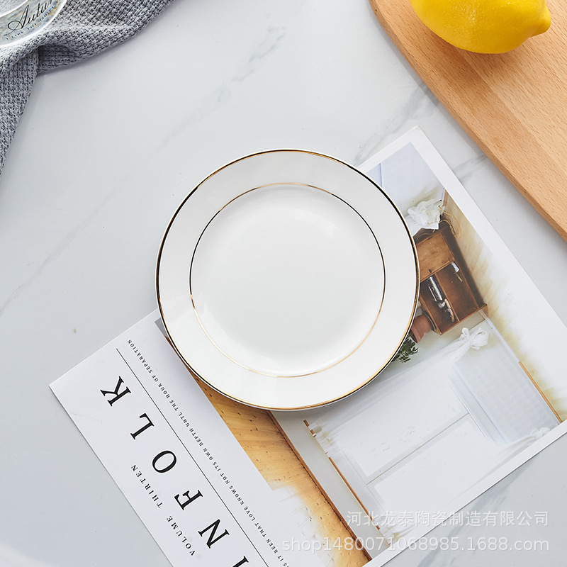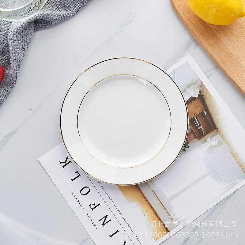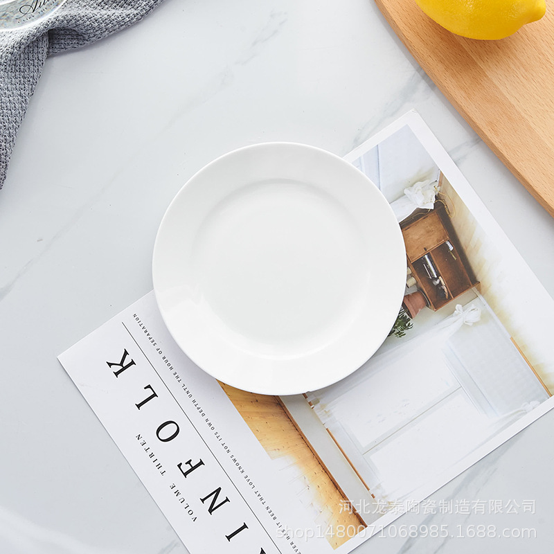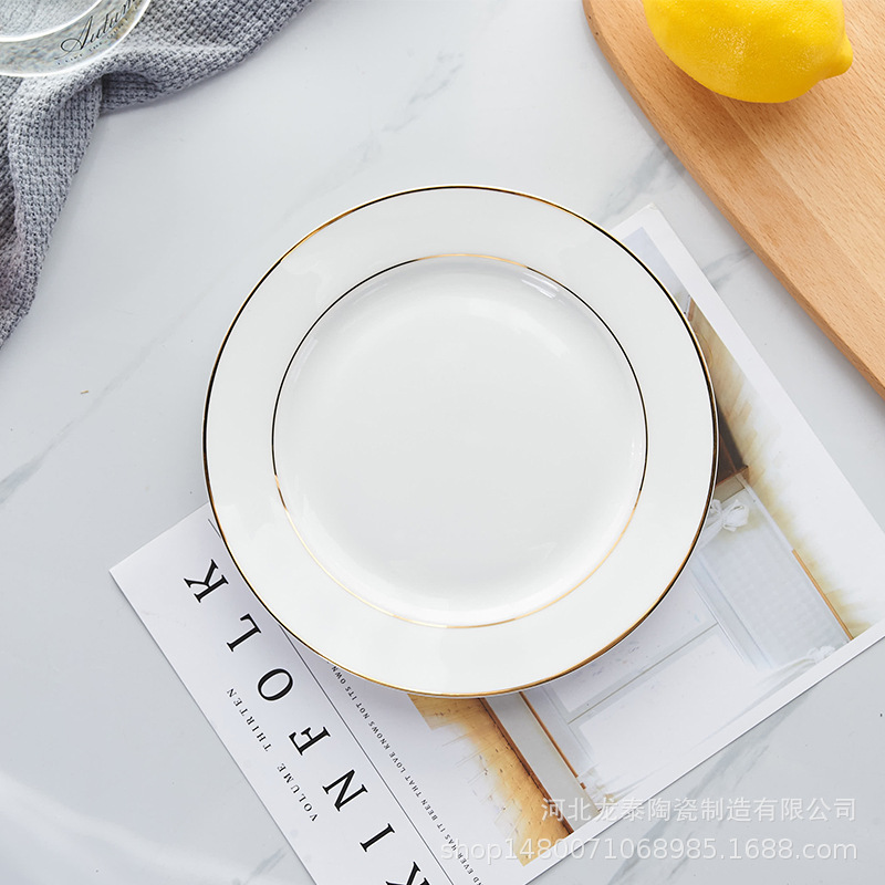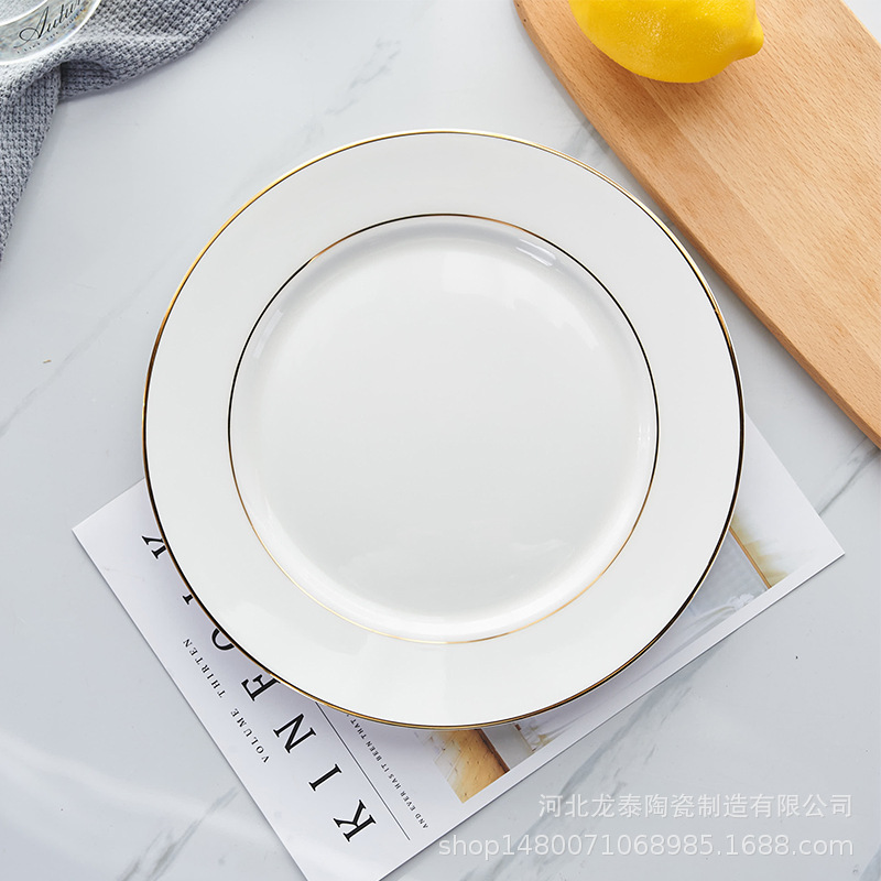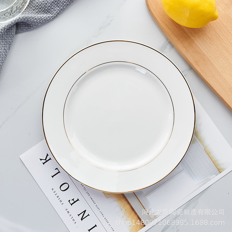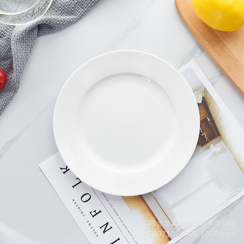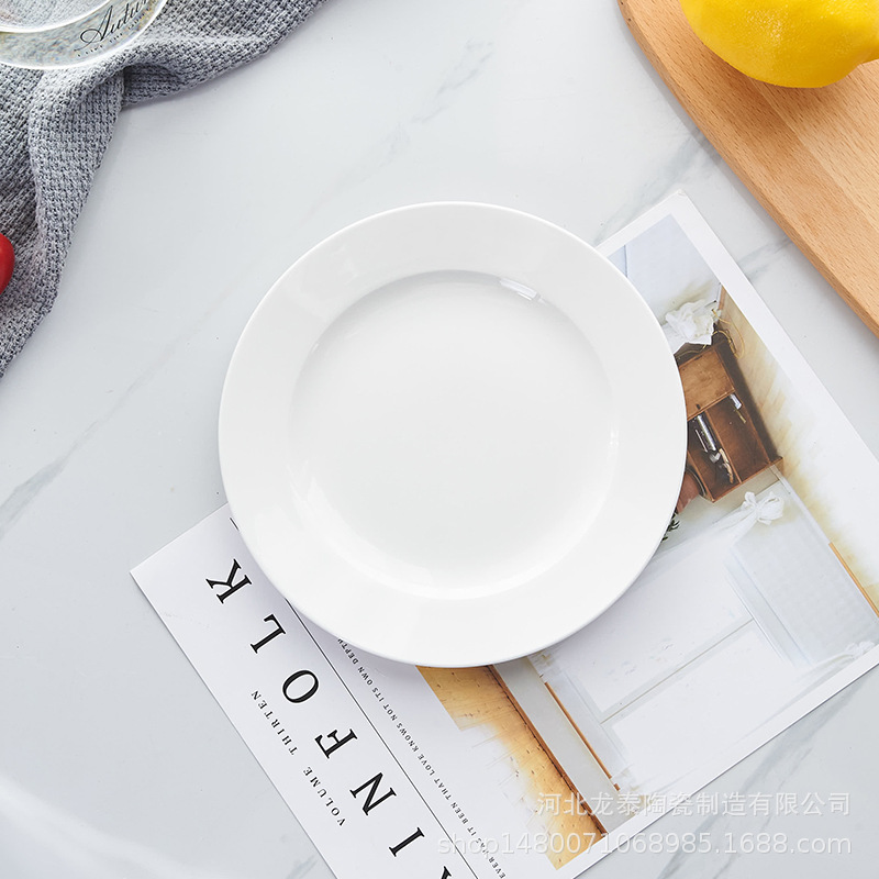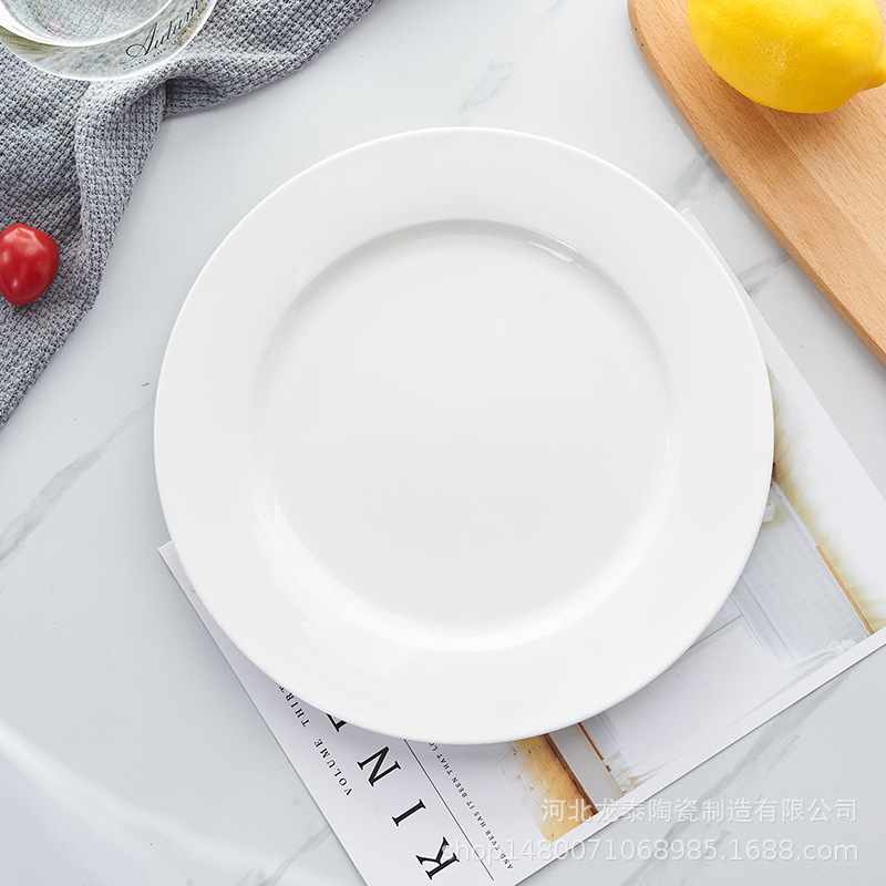 본 차이나 프놈펜 플랫 플레이트 디너 플레이트 호텔 식기 퓨어 화이트 웨스턴 플레이트 세트 스테이크 플레이트 로고 인쇄스토어 가기