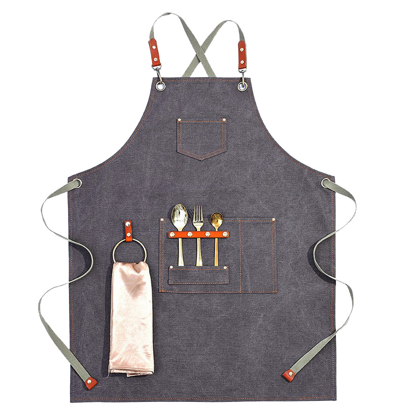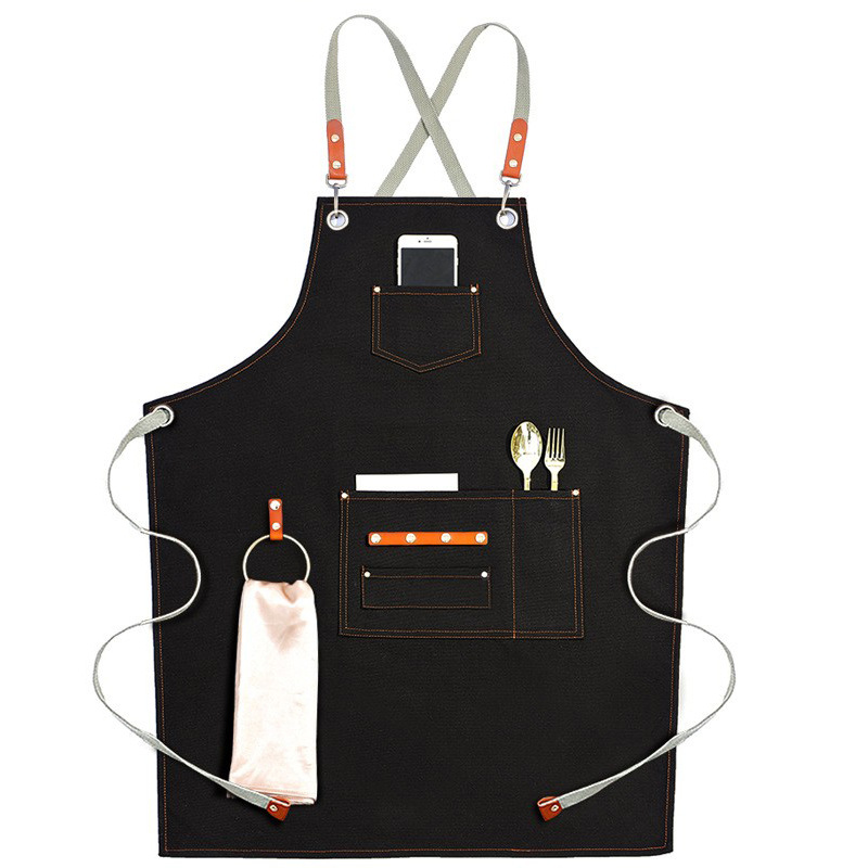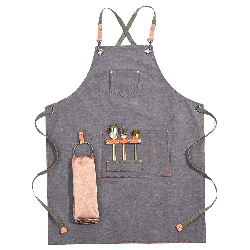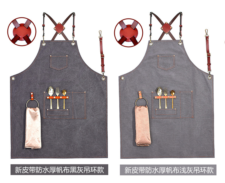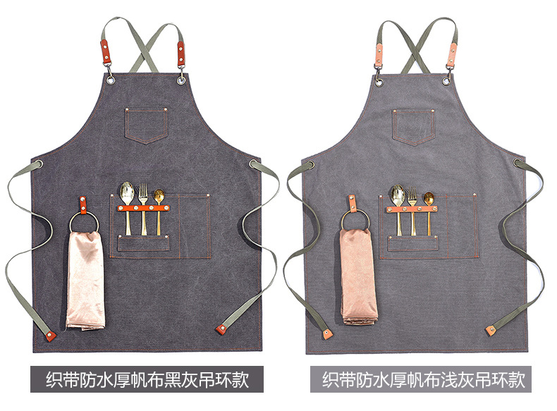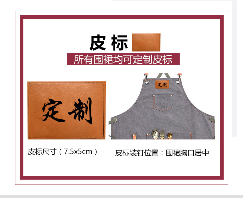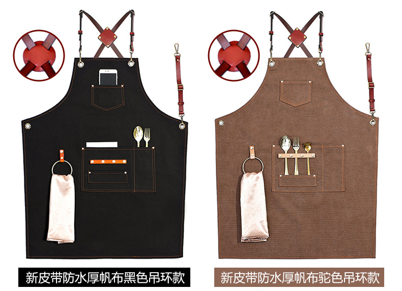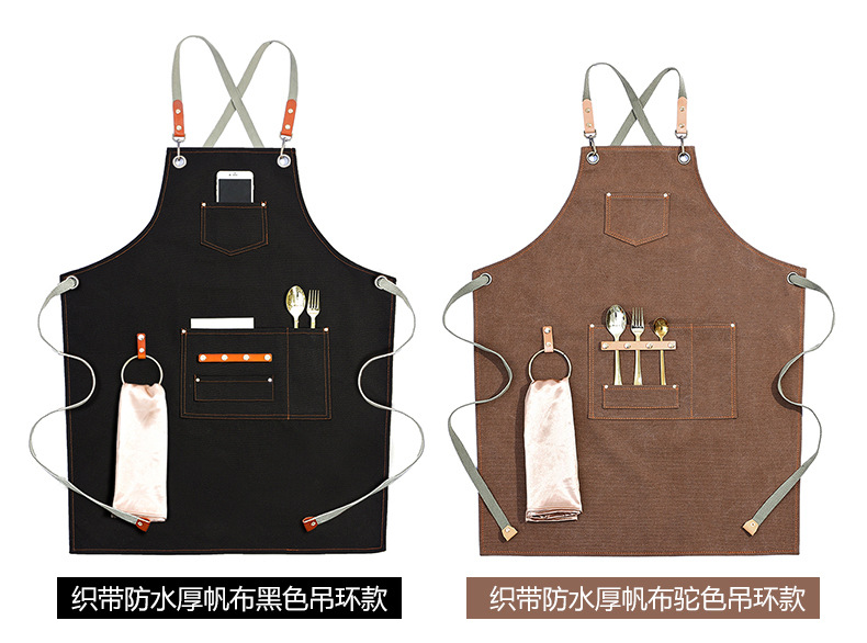 캔버스 앞치마 사용자 정의 로고 다크 브라운 인쇄 우유 차 가게 이발사 취사 베이킹 두꺼운 캔버스 작업 바지