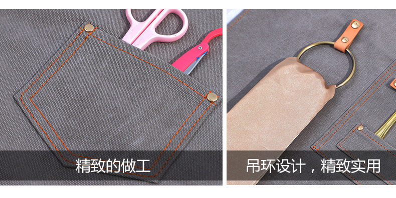 캔버스 앞치마 사용자 정의 로고 다크 브라운 인쇄 우유 차 가게 이발사 취사 베이킹 두꺼운 캔버스 작업 바지스토어 가기