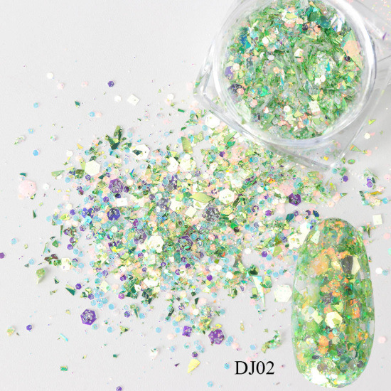 크로스 보더 핫 네일 아트 스팽글 인기있는 손톱 다각형 불규칙한 레이저 얇은 파쇄 손톱