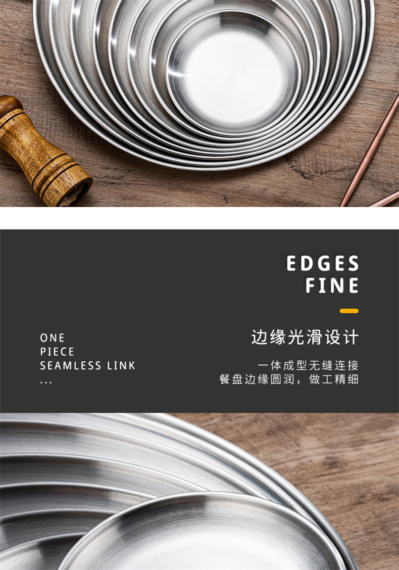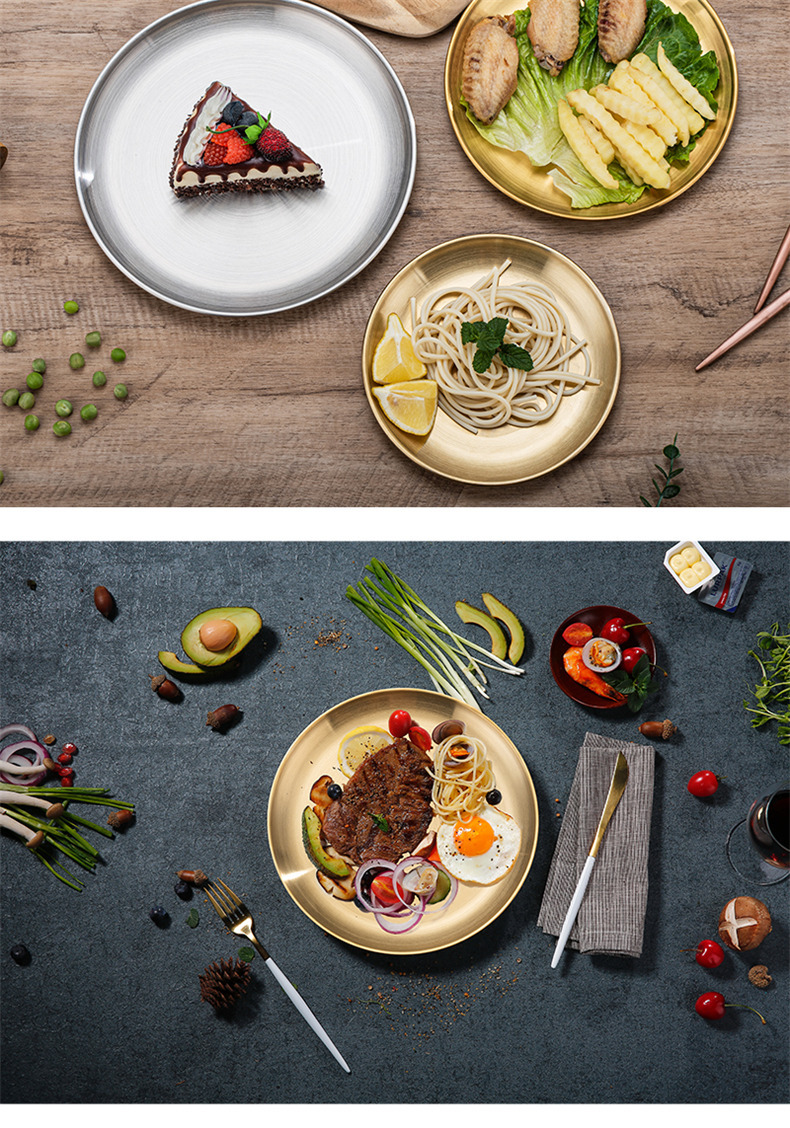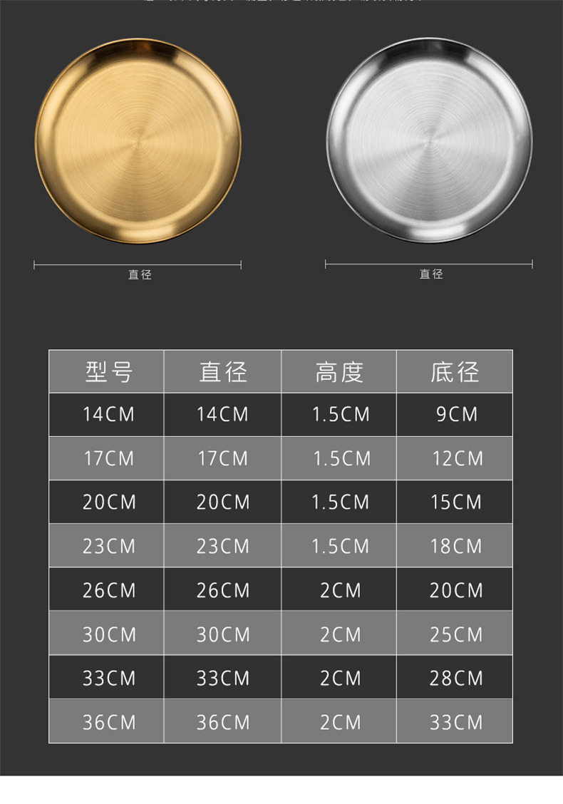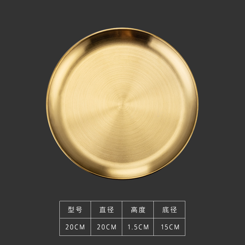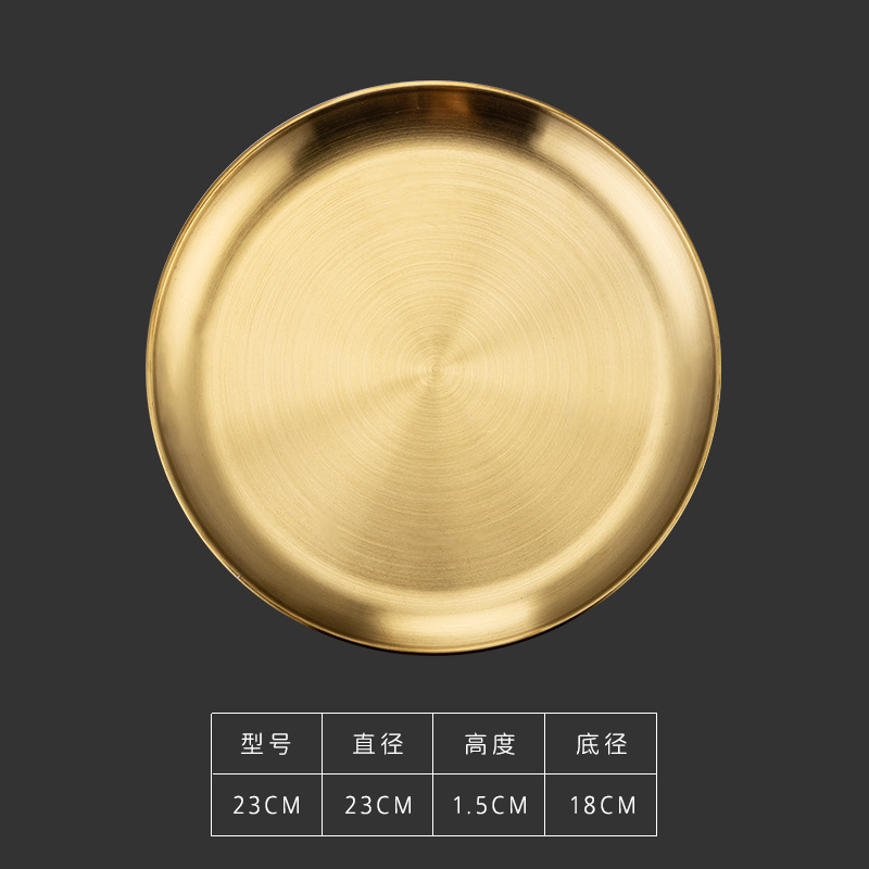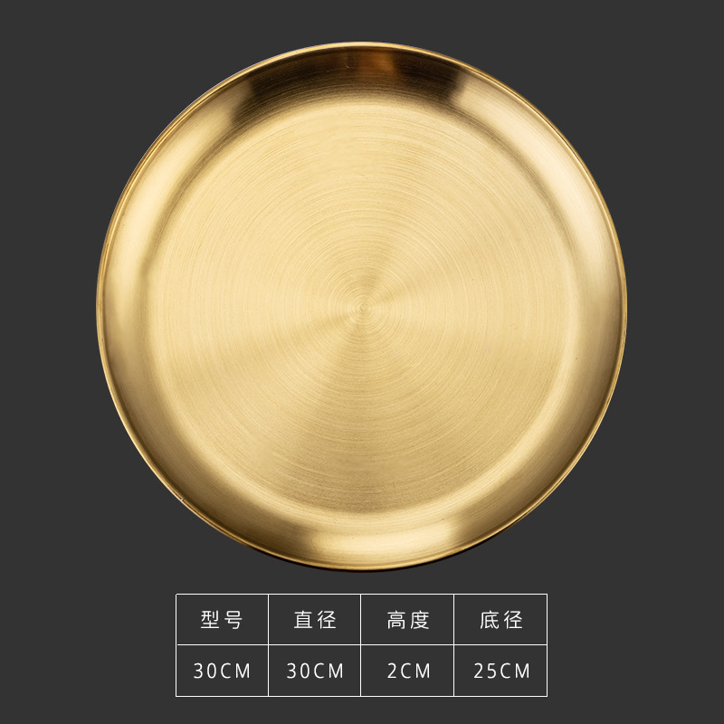 304 스테인레스 스틸 라운드 플레이트 한국 바베큐 플레이트 골든 디스크 뼈 플레이트 트레이 패스트리 과일 디저트 플레이트
