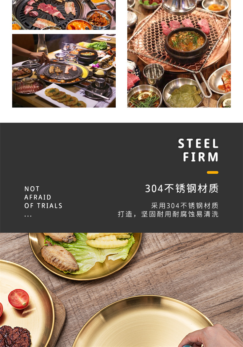304 스테인레스 스틸 라운드 플레이트 한국 바베큐 플레이트 골든 디스크 뼈 플레이트 트레이 패스트리 과일 디저트 플레이트스토어 가기