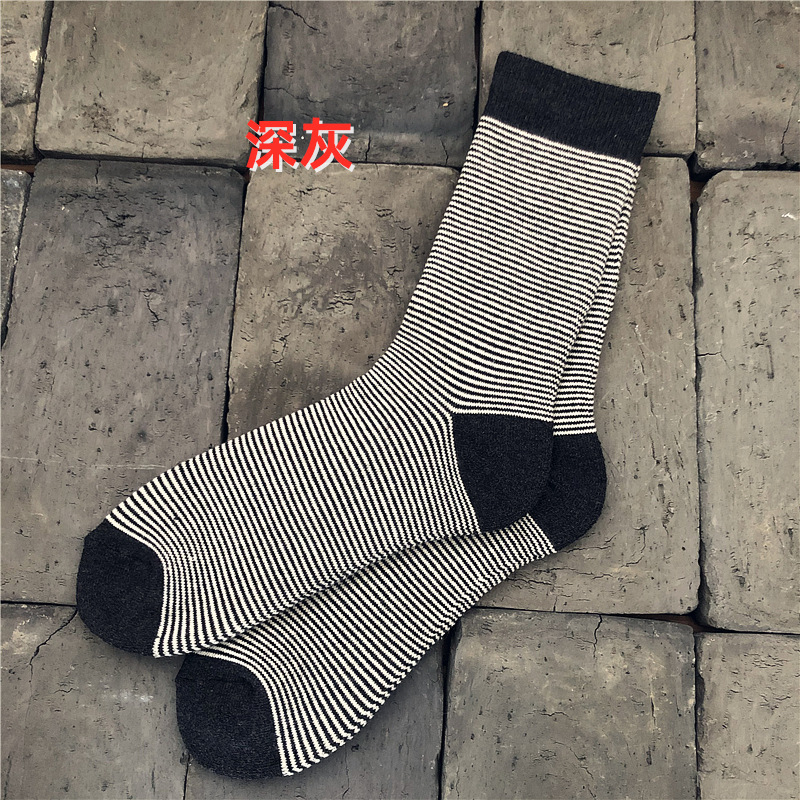 21 이른 봄 일본 빈티지 핀 스트라이프 전체 테리 높은 면 양말 따뜻한 통기성 두꺼운 수건 남자 양말 면스토어 가기
