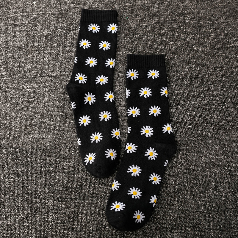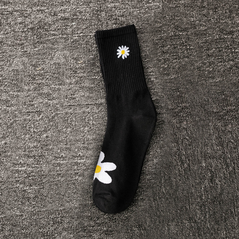 리틀 데이지 블랙 여성 양말 어린이 스타킹 국화 Ins 트렌디 한 남자 한국식 하이 탑 미드 튜브 스타킹 국경스토어 가기