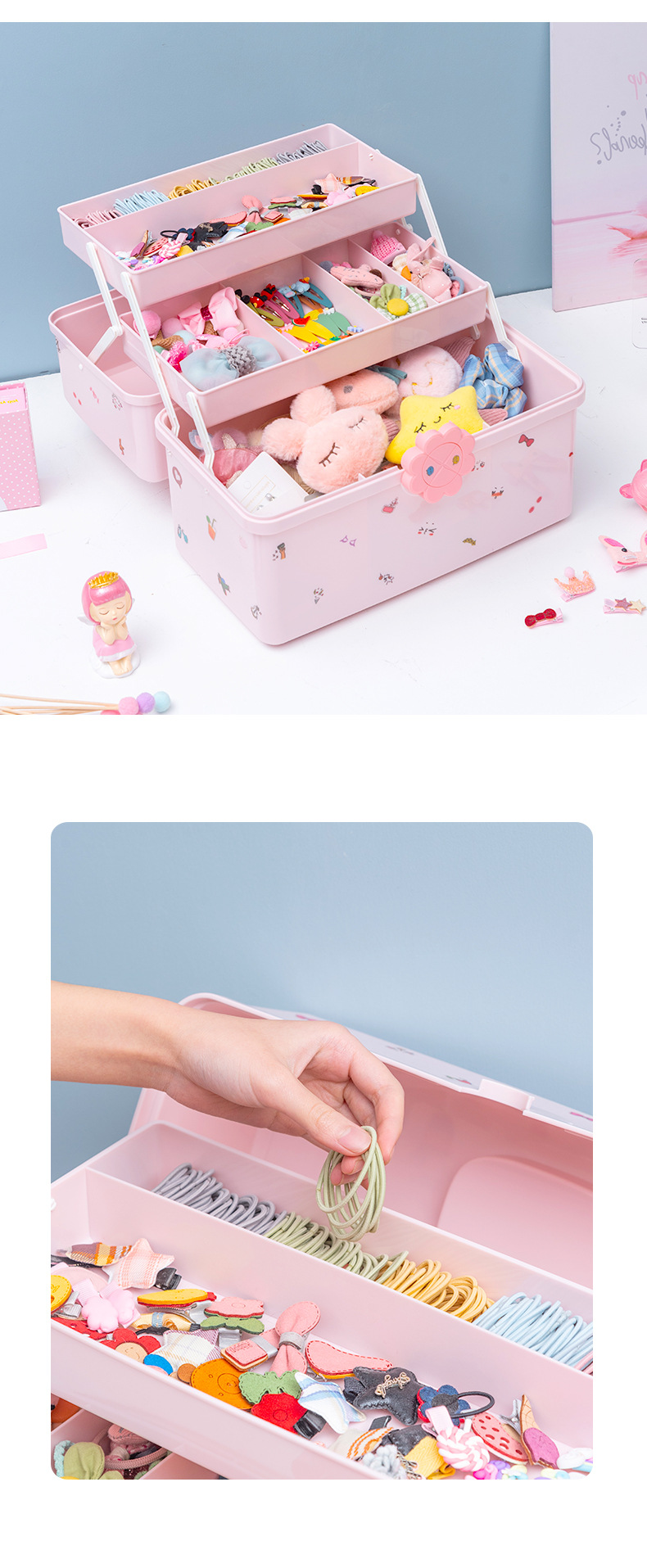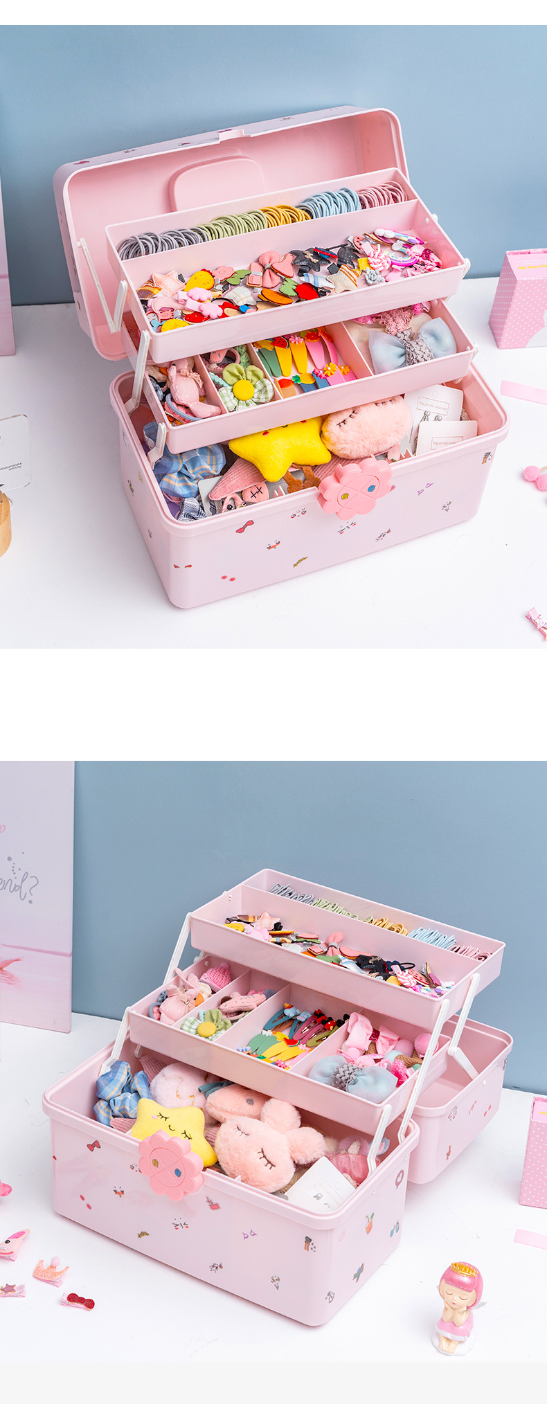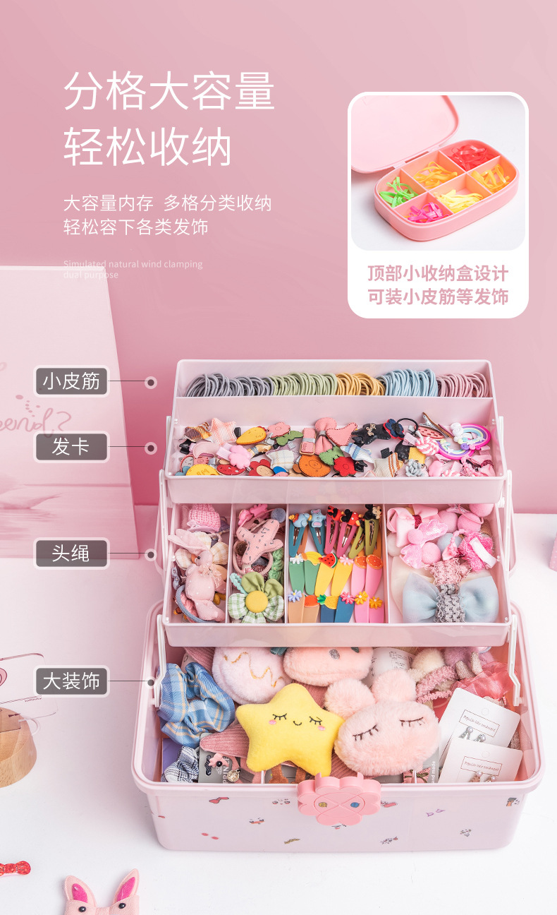 어린이 헤어 액세서리 보관 상자 소녀 아기 머리핀 고무 밴드 모자 헤어 칼라 드레싱 귀여운 헤드 라인 보석 상자