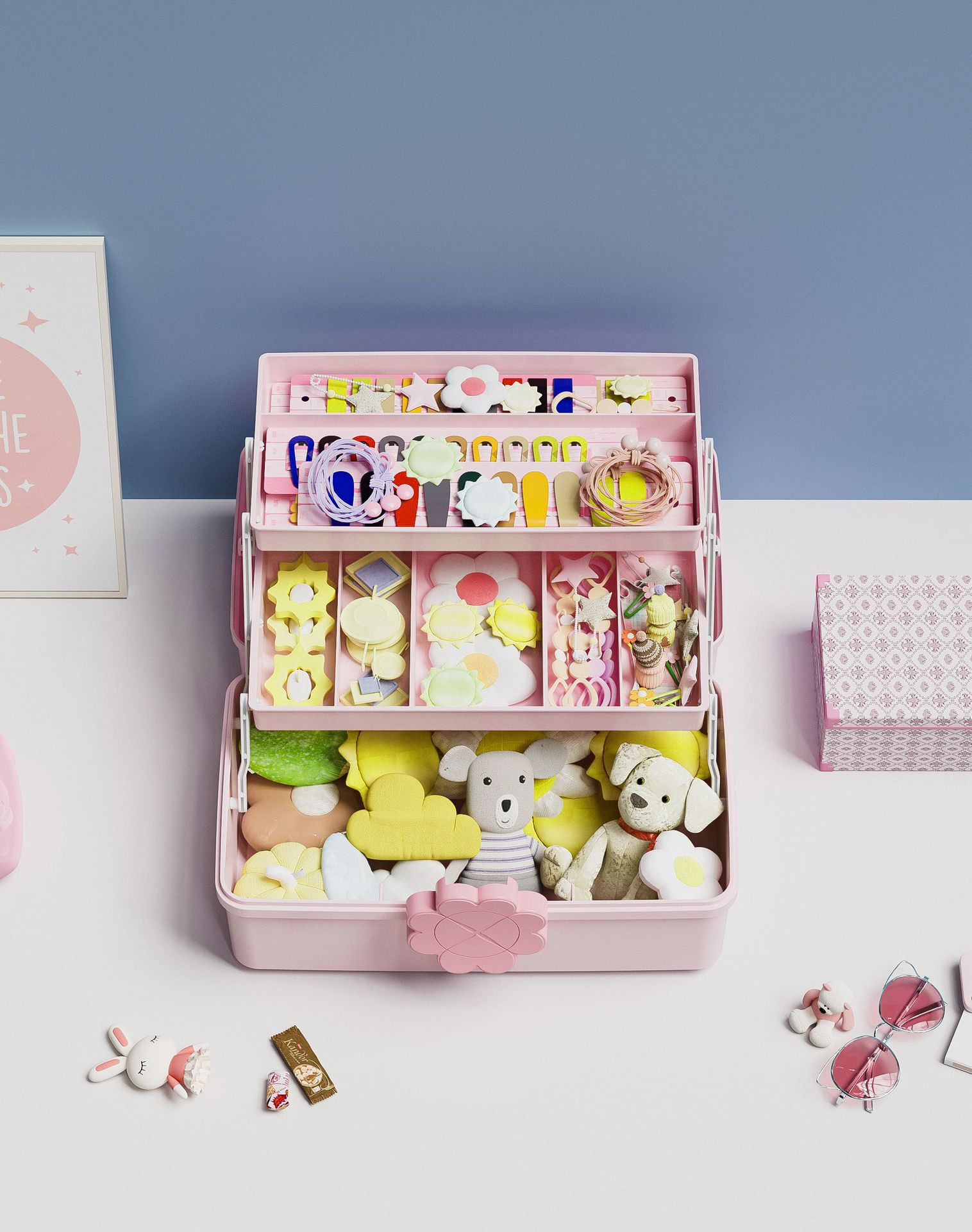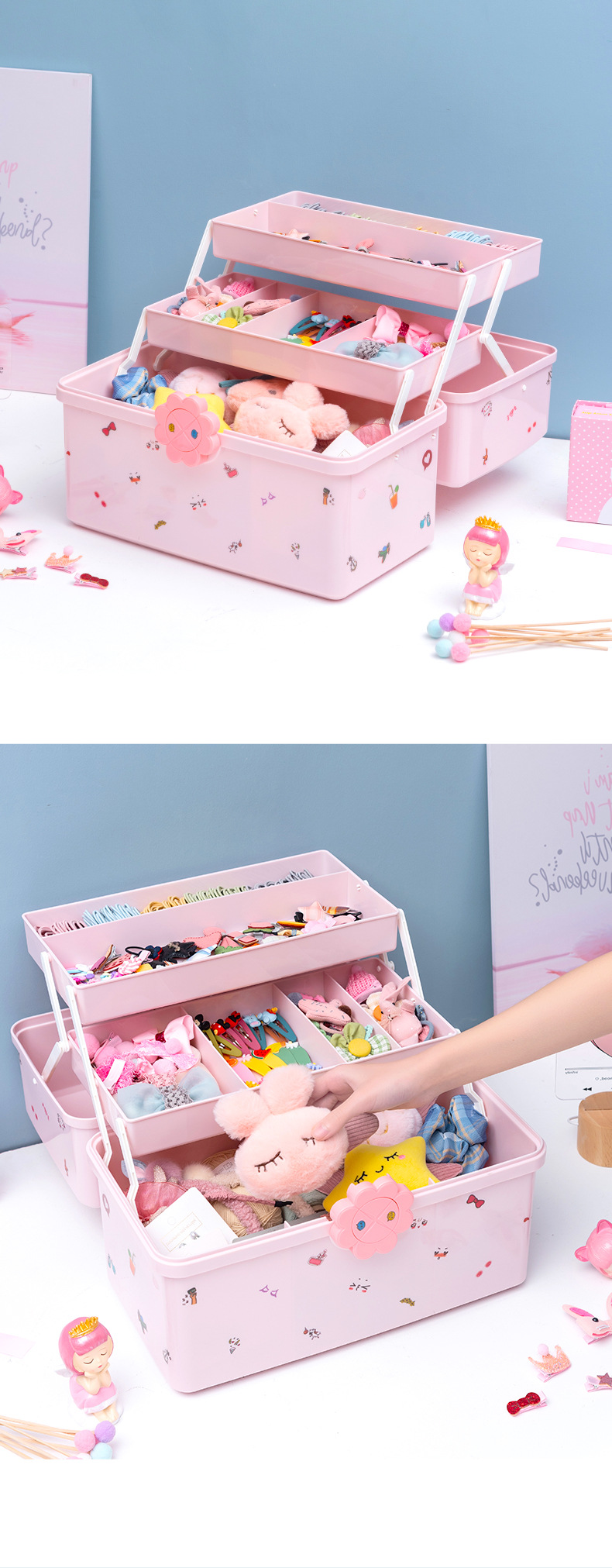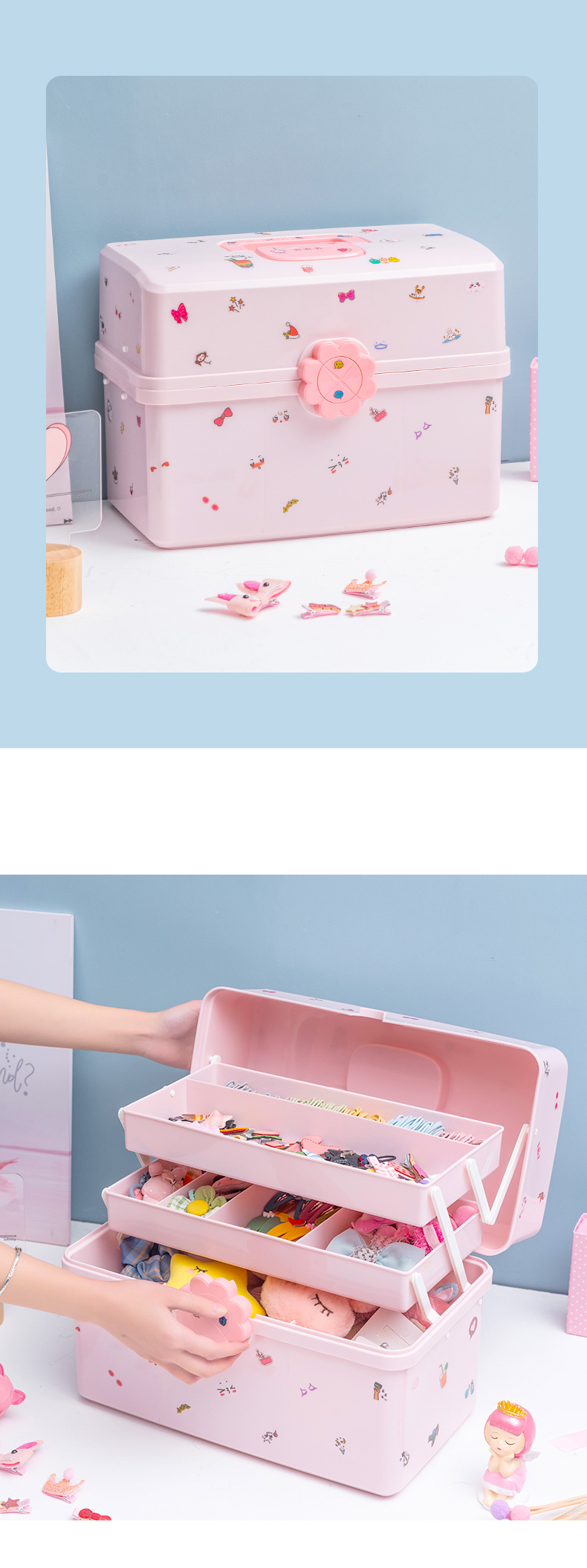 어린이 헤어 액세서리 보관 상자 소녀 아기 머리핀 고무 밴드 모자 헤어 칼라 드레싱 귀여운 헤드 라인 보석 상자