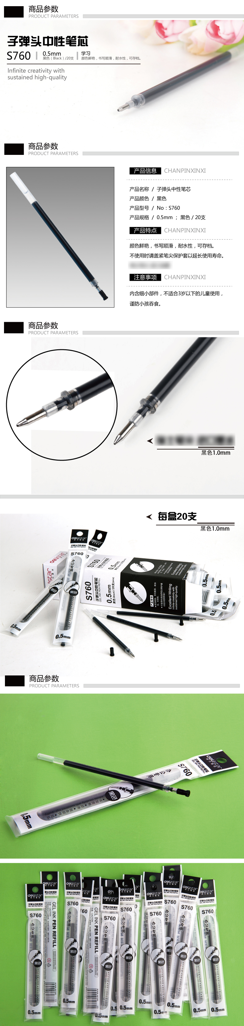 델리 S760 젤 펜 0.5mm 코어 카본 리필 워터 리필 시그니처 리필 총알 20 팩