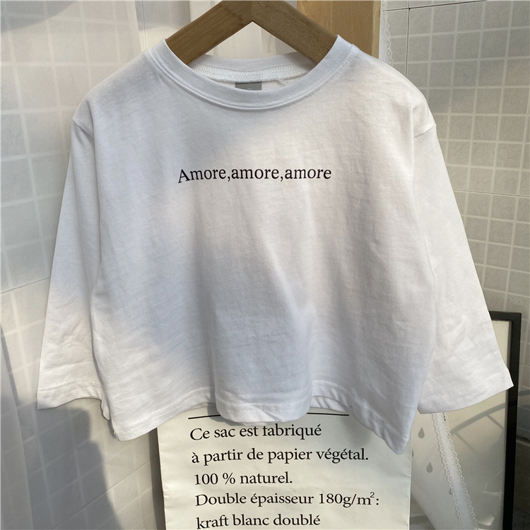 가을 2021 한국 아이들의 새로운 아동복 흰색 티셔츠 소년과 소녀 모든 일치 간단한 편지 코튼 긴 소매 T