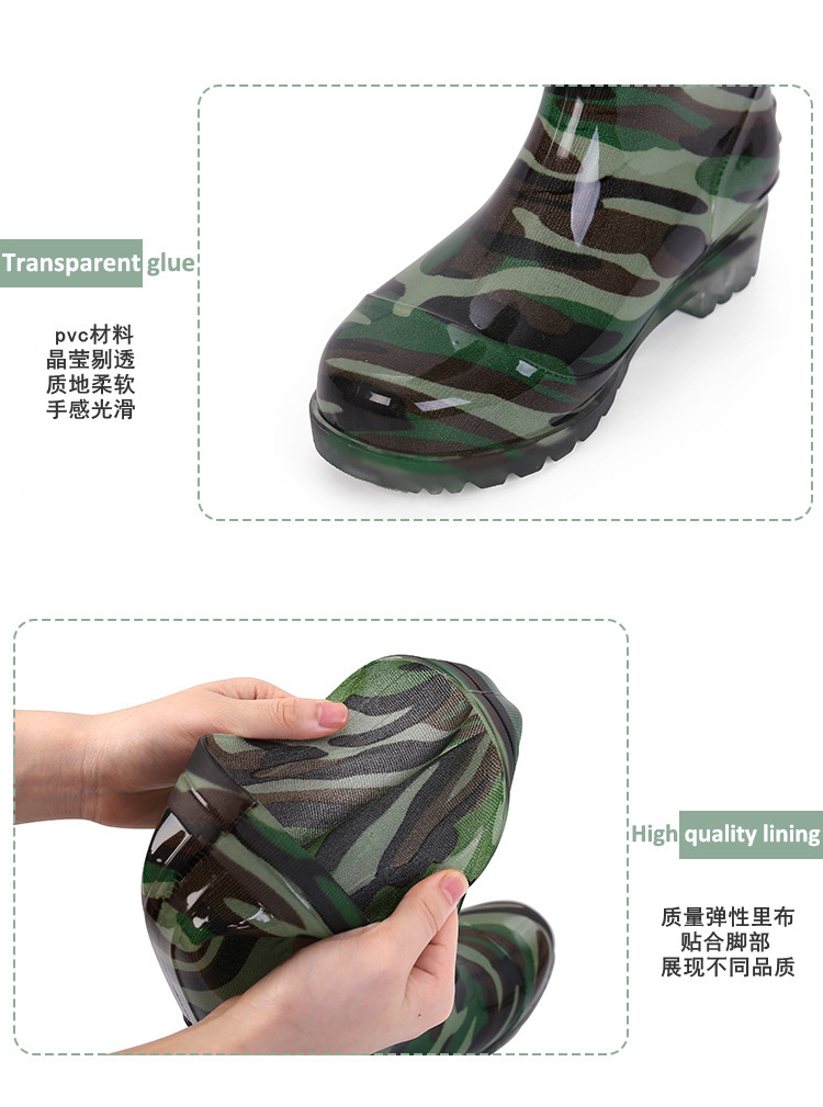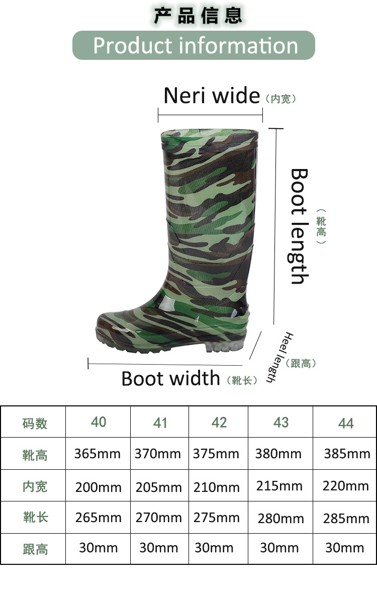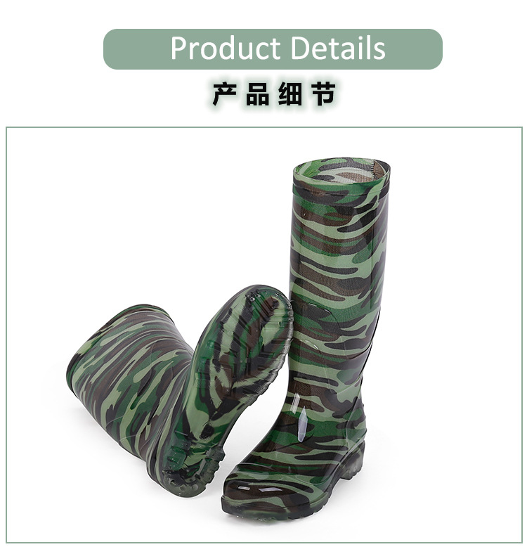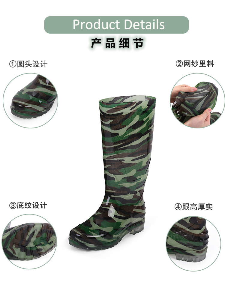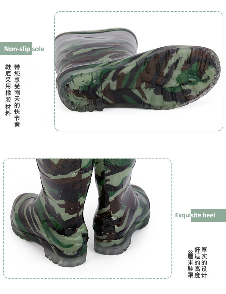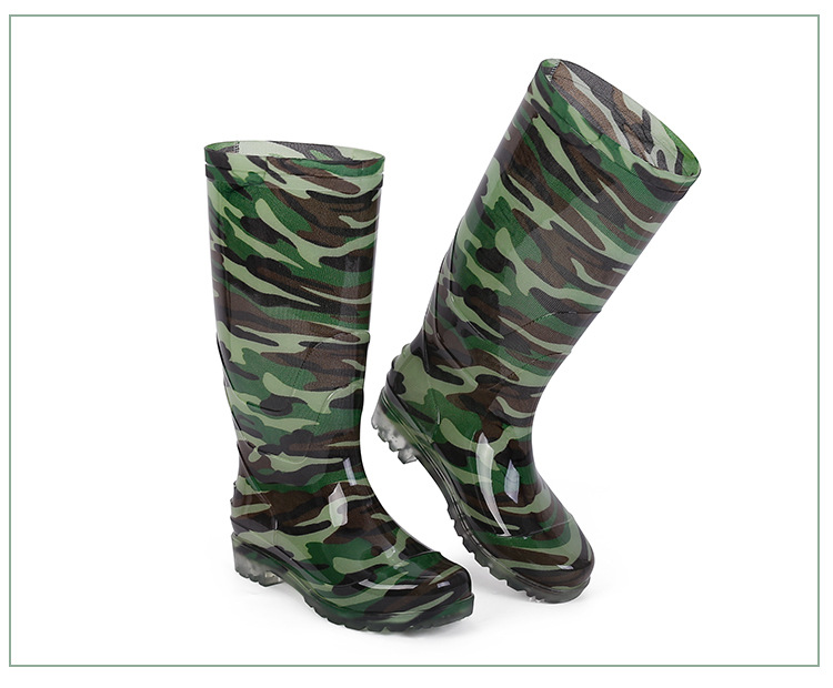 겨울 두꺼운 하이탑 부드러운 고무 위장 장화, 동결 방지 및 미끄럼 방지 하이탑 워터슈즈, PVC 따뜻한 롱탑 건설장 장화스토어 가기