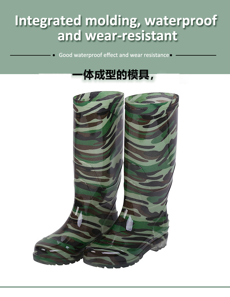 겨울 두꺼운 하이탑 부드러운 고무 위장 장화, 동결 방지 및 미끄럼 방지 하이탑 워터슈즈, PVC 따뜻한 롱탑 건설장 장화
