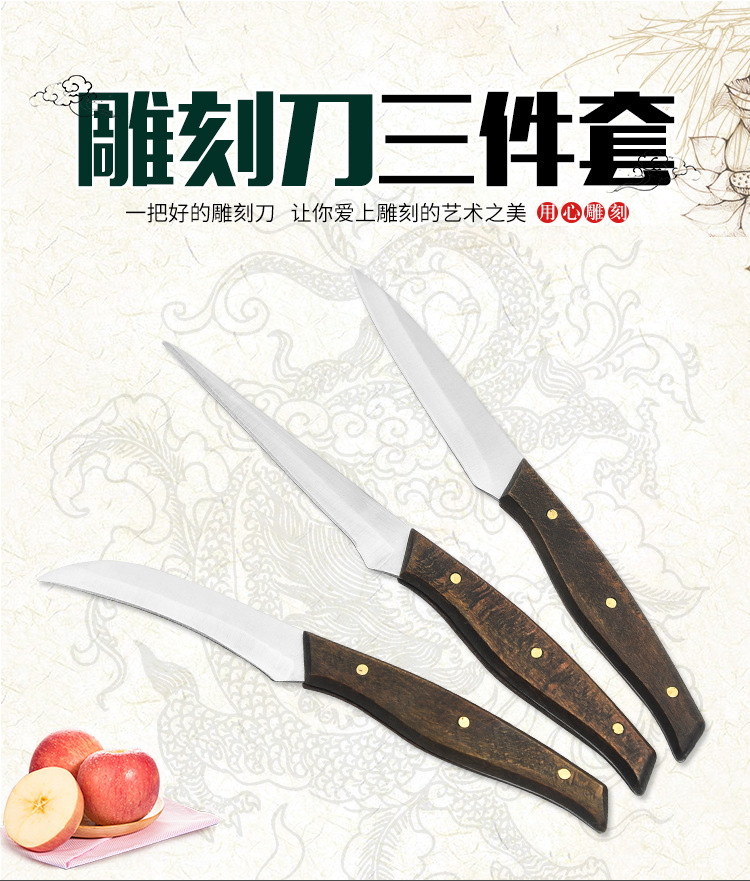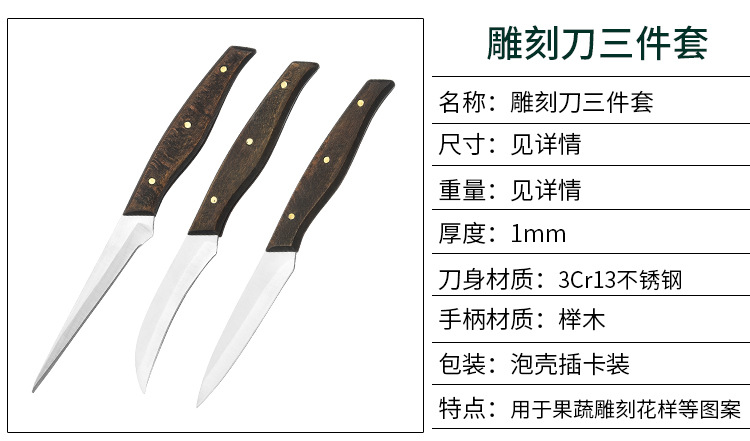 스테인레스 스틸 뼈 제거 칼과 과일 플래터 조각 칼 요리사 조각 칼이 포함된 3피스 스팟 식품 조각 칼 세트스토어 가기