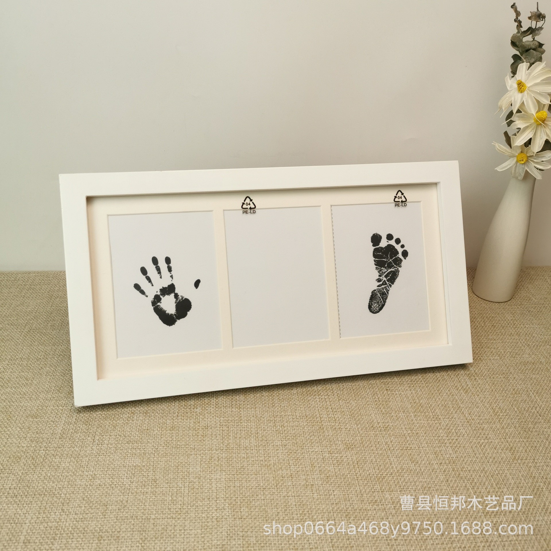 재고 아기 손과 발자국 머드 우드 사진 프레임 아기 백일 보름달 1 년 된 손과 발자국 성장 기념 사진 프레임 세트 테이블