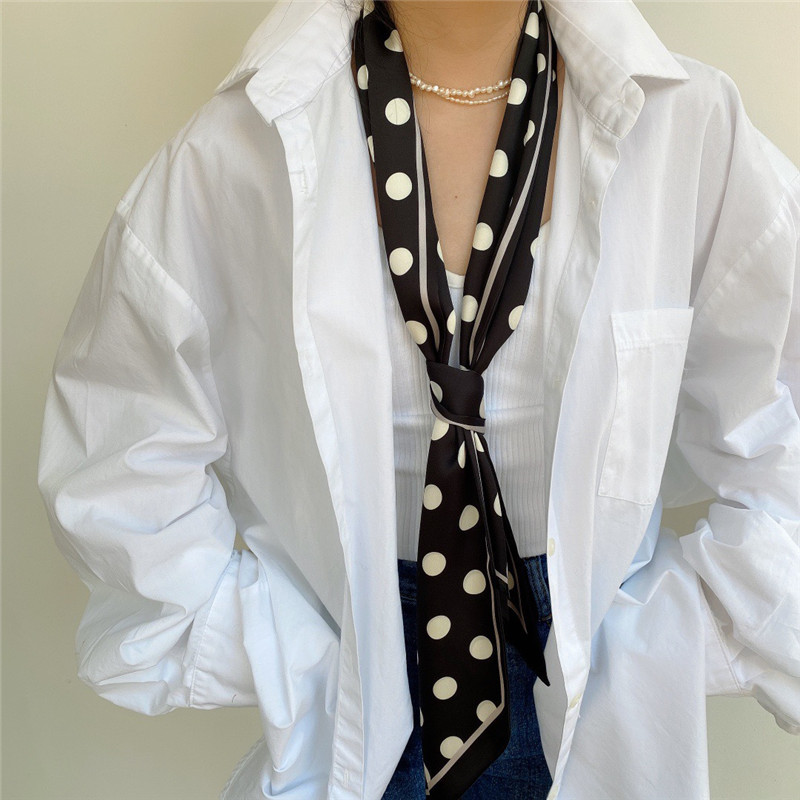 경 사진 작은 실크 스카프 장식 봄과 가을 모든 일치 한국 얇은 좁은 스카프 리본 리본 한국식 얇은 스카프 여성용