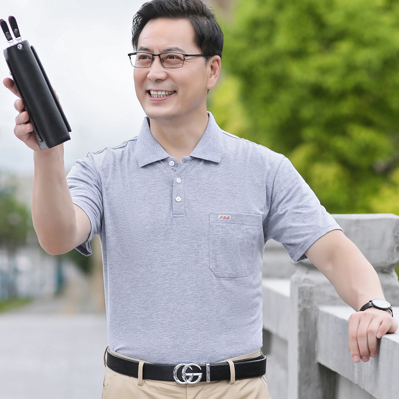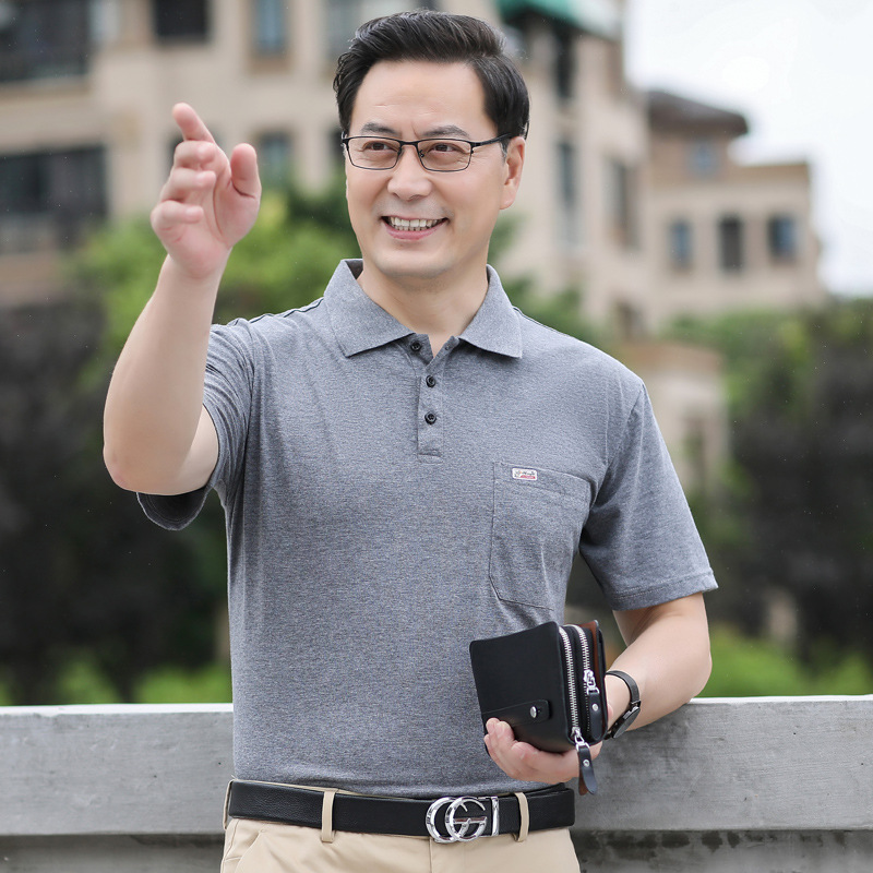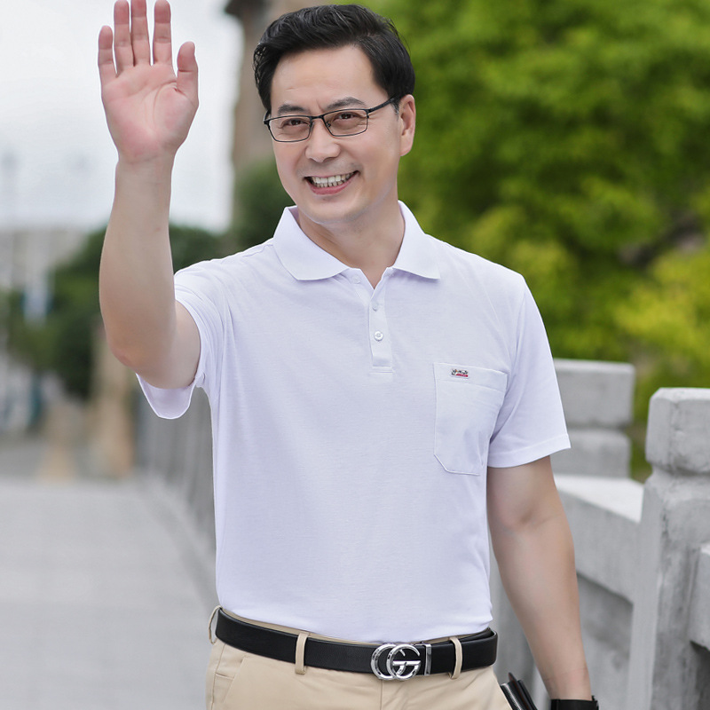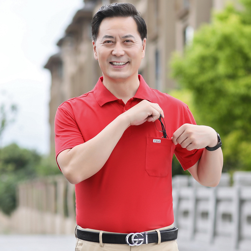 새로운 중년의 빨간 아빠 옷 남자의 여름 옷 이 인생 아빠 반팔 티셔츠 광고 셔츠 도매스토어 가기